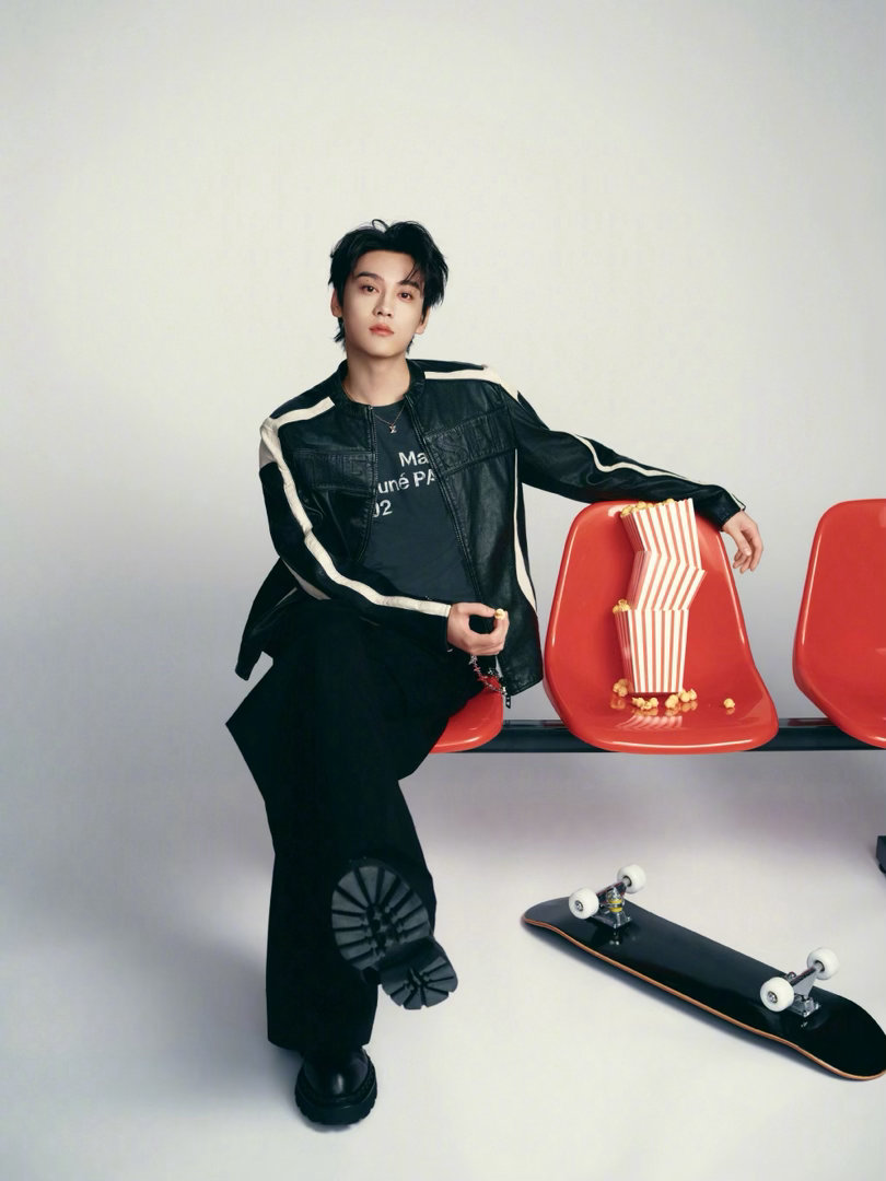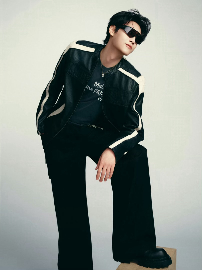 田栩宁|今日直播造型出图,身穿DIESEL拼色皮夹克,挺阔有型,缀以LV配饰,简约利落。潮流代言人帅得太权威啦!!!
