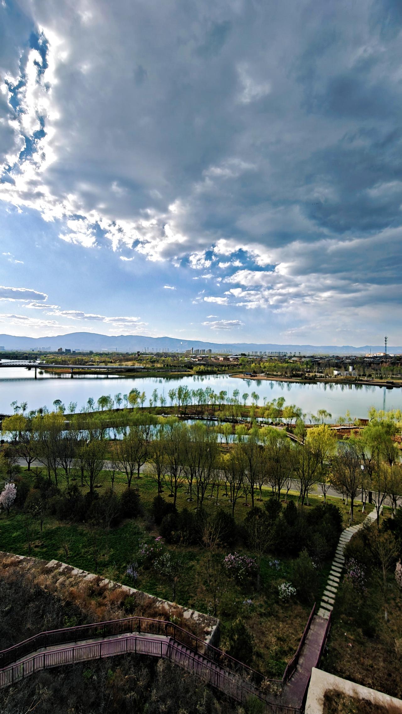 爱上手机摄影 润州园有个观景台,向西望去,天寿山世尊院,北顶,南顶,一目了然(图