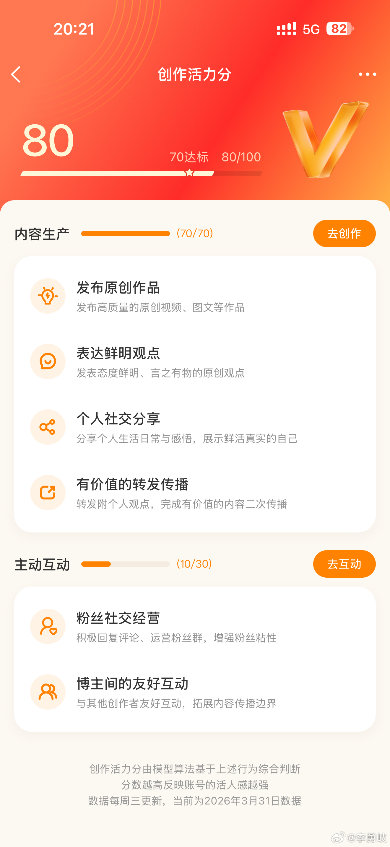 微博现在又上线一个“创作活力分”!卷阅读量和铁粉数也罢,现在还要卷粉丝好友互动,