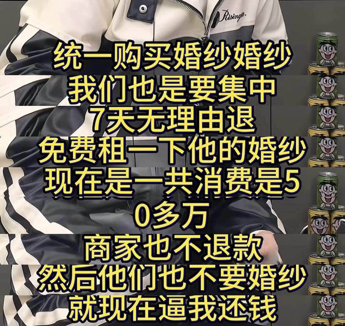 集美大女主组织“自嫁”活动,收了50万给参与者统一免费租高档(均价7000多)婚纱,用完要退发现商家不同意着急坏了,特意找女律师咨询,本以为女人一定会帮助女人,没想到遇到了一个正规律师,听完直摇头还给了句中肯的评价:天作犹可恕,自作不可活。