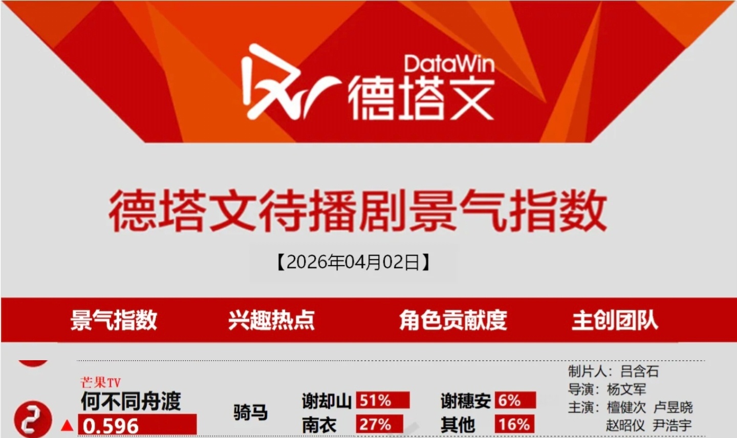 4月2日德塔文待播剧景气指数《何不同舟渡》谢却山骑马出圈檀健次谢却山‖檀健次何