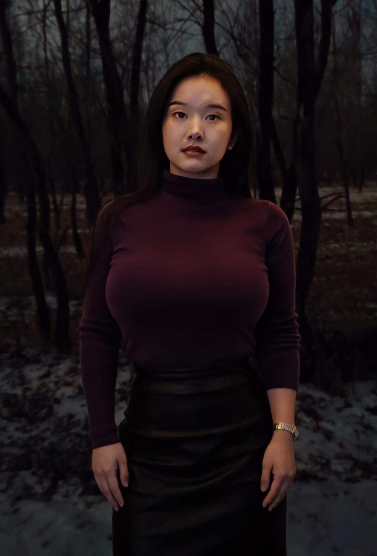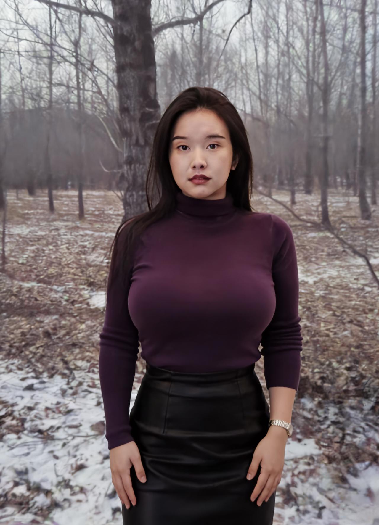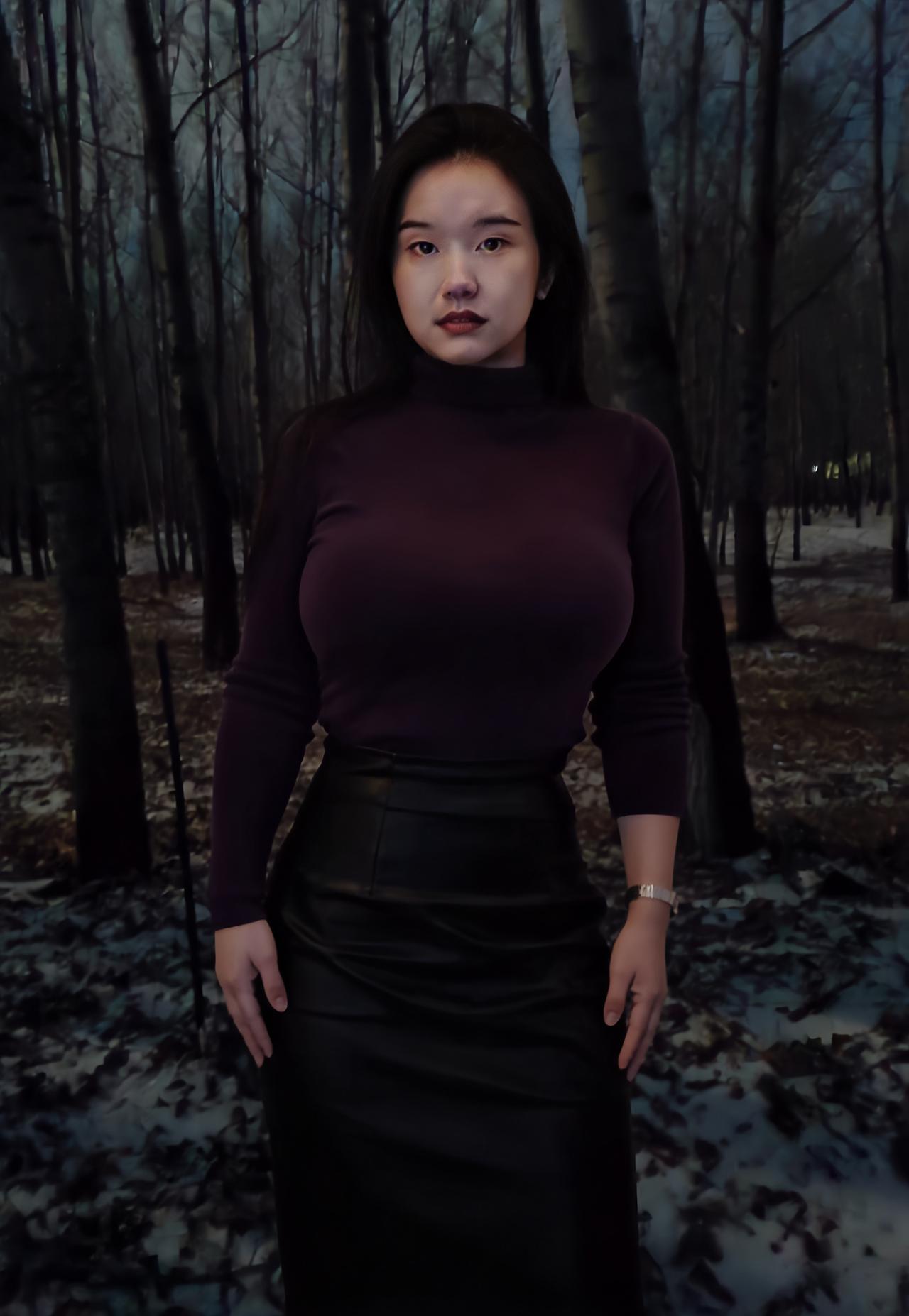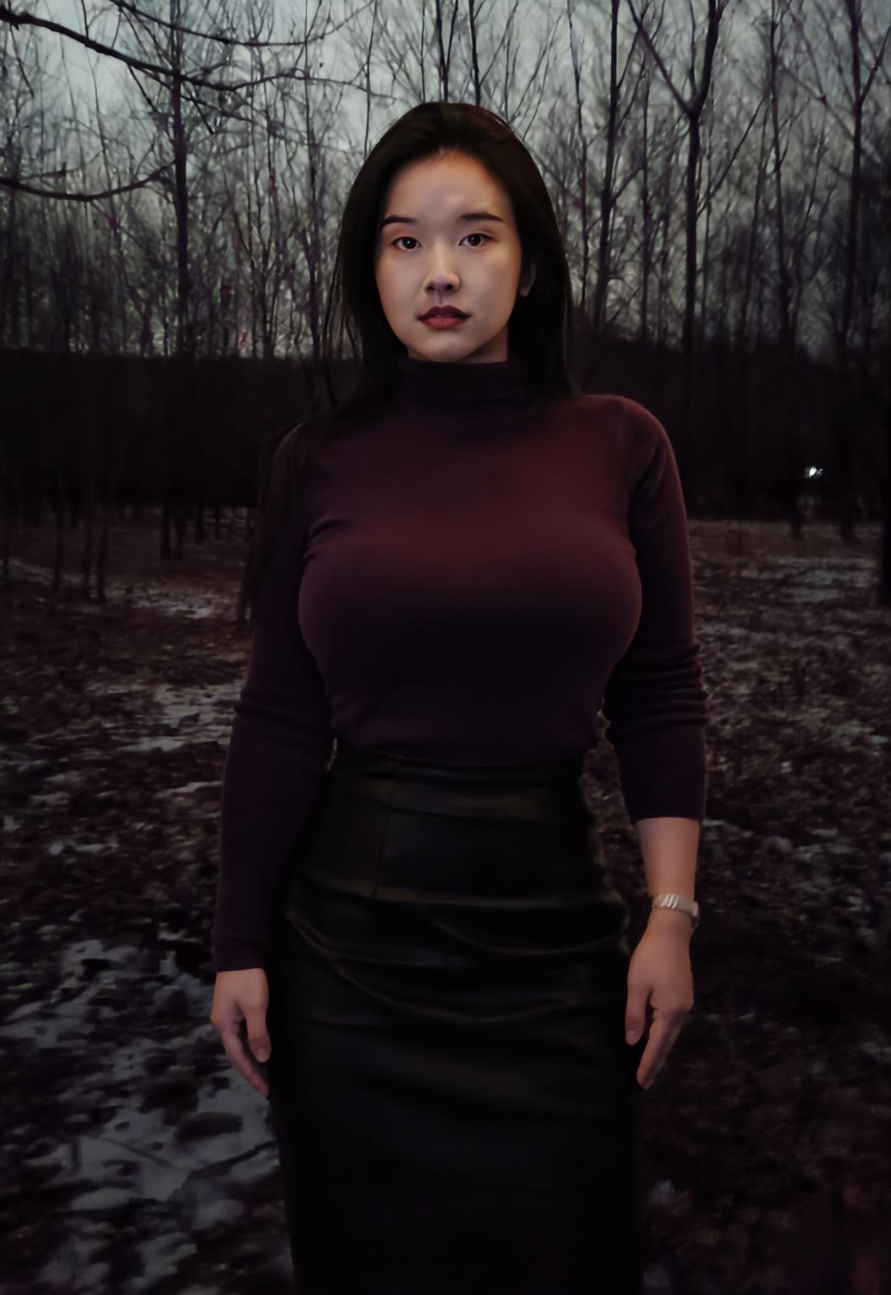 暮色漫过荒径的肩,从天际的褶皱里漫落, 像一匹褪了色的锦缎,轻轻覆住枯草的窝。 霜花在枯枝间凝作浅白的烟, 每一粒冰晶都藏着冬的私语,不肯言说。 ~ 她立在冬夜的边缘,身影与暮色相融, 紫褐的高领裹着温软的骨, 黑裙垂落,像夜未散开的帘, 扫过脚边的霜土,留下一道浅淡的痕。 ~ 腕间的银饰沉在暗里,却亮过天边未熄的星点, 那是她指尖未说的言,是藏在沉默里的暖。 风掠过枯草丛的呜咽,拂过她垂落的发, 发丝轻扬,又轻轻落下,不疾不缓。 ~ 那风里裹着冬的凉,也裹着春的盼, 吹不散她眼底凝住的渊,那渊里无波无澜, 却盛着世间的软与坚,盛着无人懂的孤单。 ~ 不是怯,是冬野赋予的静敛, 像寒夜里扎根的木,把锋芒藏进枝干,把温柔藏进根须。 不是冷,是暮色揉进的暖, 是她站在风里,却把温度留给了路过的影。 ~ 荒径向远方蜿蜒,像一条未写完的线, 她站成冬夜最韧的节点,把寒夜的寂,织成温柔的绵。 每一寸轮廓都浸着安然,每一次呼吸都带着从容, 在霜风里,不慌不颤,在暮色里,自成一景。 ~ 她没有言语,却比言语更有力量, 她没有盛装,却比盛装更显芬芳。 冬夜的风再狂,吹不散她的影, 霜华再厚,也覆不住她的光。 原来最美的模样,从不是张扬的盛放, 而是于寂寂冬野里,站成自己的暖阳。