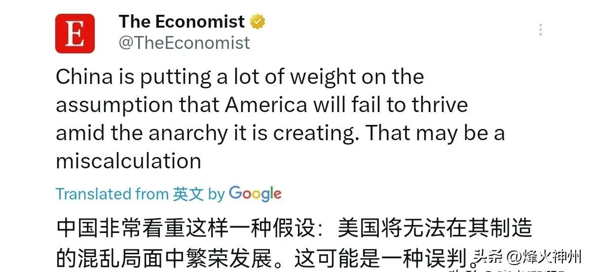 中国“错判”了美国!经济学人刊文声称,中国对美国可能“误判”了!4月2日,经济学人刊文表示,中国的顾问、学者、专家以及现任和前任官员。几乎所有人都认为这场战争是美国犯下的一个严重错误。该文声称,中国之所以置身事外,是因为中国理解拿破仑·波拿巴在奥斯特里茨战役中,面对敌军放弃高地时所说的那句格言:“永远不要打断正在犯错的敌人。” 评几句: 《经济学人》刊文指责中国“误判”美国,甚至将中国秉持客观中立、不拱火浇油的立场,歪曲成“坐等敌人犯错”,本质上是西方媒体维护霸权的刻意抹黑。 中国各界判断美国在地区冲突中犯下严重错误,并非主观臆断,而是基于现实结果。美国最初妄图以高压手段迫使对手屈服,可时至今日,不仅战略目标完全落空,反而让地区局势愈发混乱,自身也深陷外交泥潭。没有收益只有消耗,这不是错误又是什么? 该刊不认同美国无法在混乱中繁荣的观点,依旧迷信西方靠战争掠夺强盛的旧逻辑,却无视当今时代的根本变化。过去强权靠武力得利,如今穷兵黩武只会加速国力透支,制造混乱更无法转化为自身优势。 真正的误判,从来不是中国,而是西方媒体仍活在霸权旧梦里,以为武力威慑能横行天下,透支国力能维持霸权。历史早已证明,靠制造冲突维系的优势注定短暂,美国的战略失策已是不争事实,再怎么狡辩,也掩盖不了霸权衰退的现实。