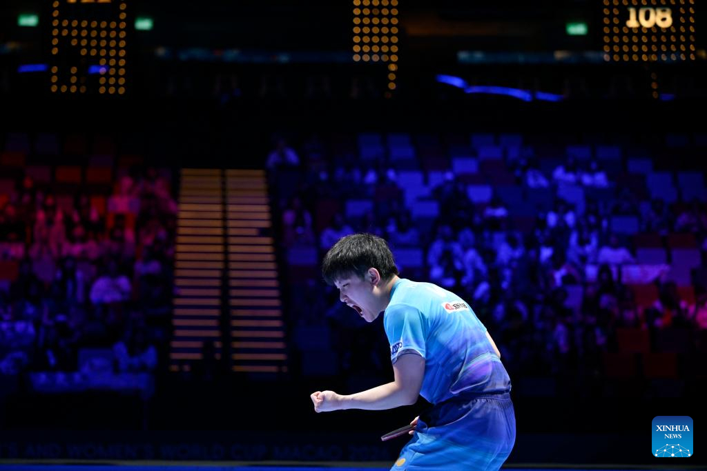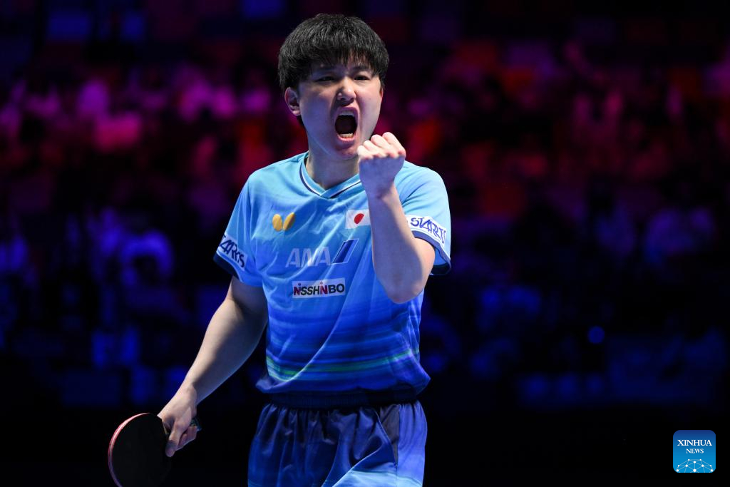 张本智和张本智和2026澳门乒乓球世界杯新闻报道 2026年4月2日,中国澳门。在2026年国际乒联(ITTF)男女世界杯男子单打1/8决赛中,日本选手张本智和对阵德国选手邱党。cr.新华社