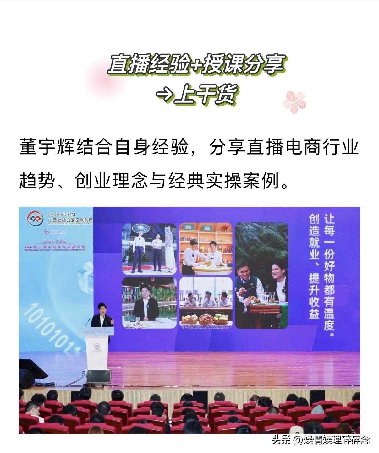 宇辉在2026广西丝路电商赋能行动中,发表演讲《丝路万里,一念可及》,他现场公布的一组组实打实的数据,胜过千言万语。 宇辉提到去年6月的广西专场直播,仅仅一小时,就创下了400万人观看、最高在线17万人的热度,直接售出26万单,销售额突破1460万。就连他自己都坦言,这样的一小时数据,无论在水果领域还是农业领域,都足够令人兴奋,而这场直播,还带动了其他广西特色产品,实现了2572万的销售额。 从那场直播开始,广西的清甜鲜果、东盟的特色好物,就一直常驻“与辉同行”的直播间。今年1月底,“阅山河”栏目再度奔赴广西,三天直播更是交出了傲人成绩单:累计一亿人观看,狂销539万单,700多款产品上线,总销售额高达2.9亿元,不少产品刚上架就被抢购一空,直接卖到断货、无库存可补。宇辉也自信坦言,若是供应链跟得上、货品供应充足,这份数据还会再创新高。 这些冰冷又滚烫的数字,不是凭空而来,而是千万消费者用信任做出的真实选择。就算外面风言风语,诋毁铺天盖地,但消费者自己心里清楚,该信谁。 数据会刷新,销售额会被超越,但这份看不见的信任,才是他们前进的底气。