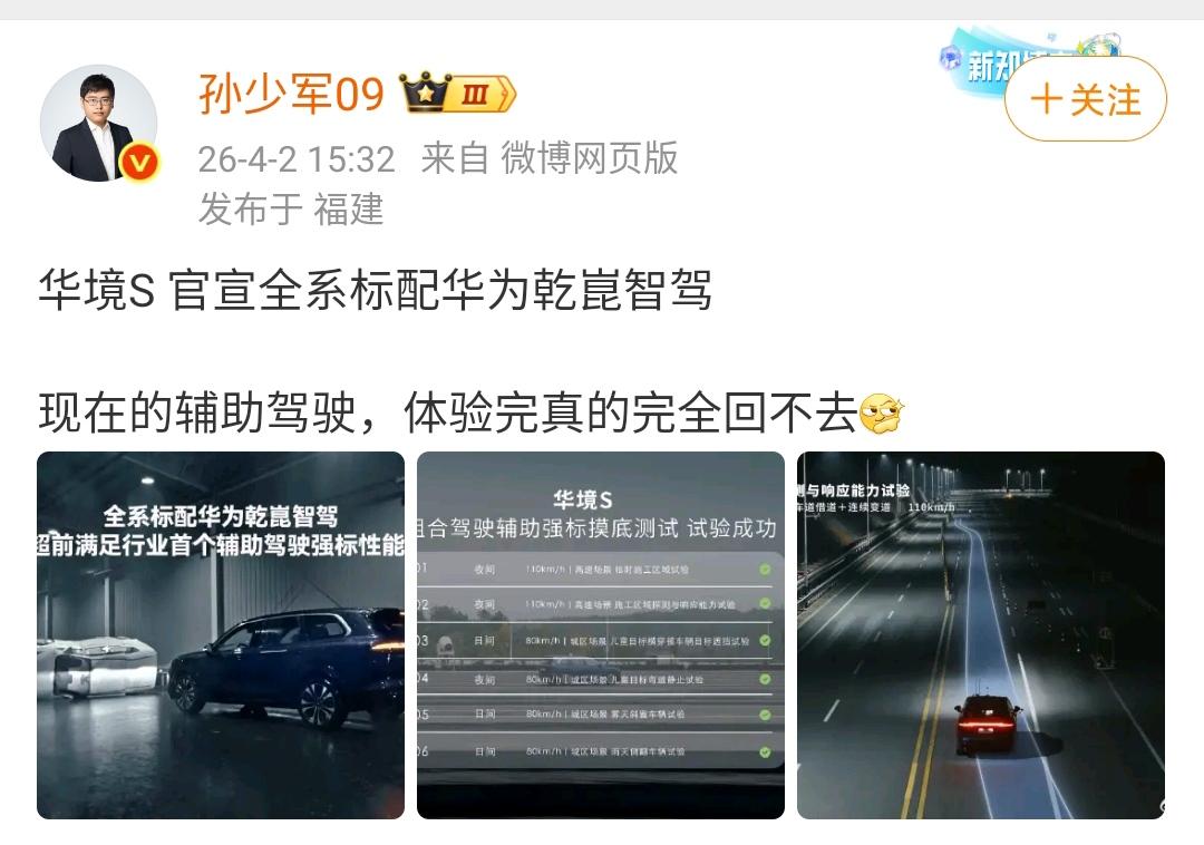 孙少军:华境S 官宣全系标配华为乾崑智驾,现在的辅助驾驶,体验完真的完全回不去! 为大家说明一下这个品牌,这个品牌是上汽通用五菱旗下的品牌,也就是生产五菱宏光MiNi的那个厂家推出来的品牌。 由于现在的品牌太多了,对于绝大多数的消费者来说,这些新品牌都需要一个适应的过程。