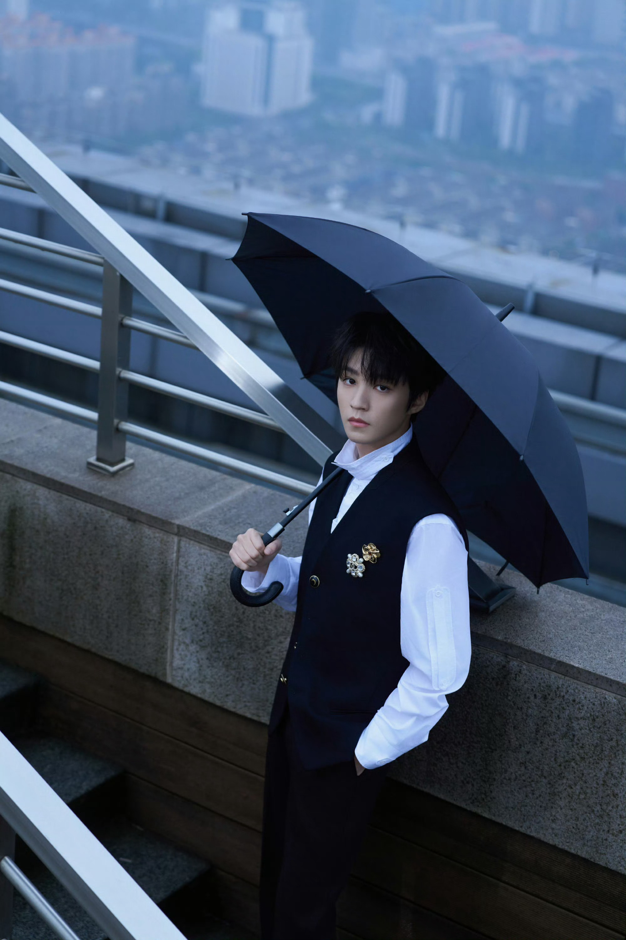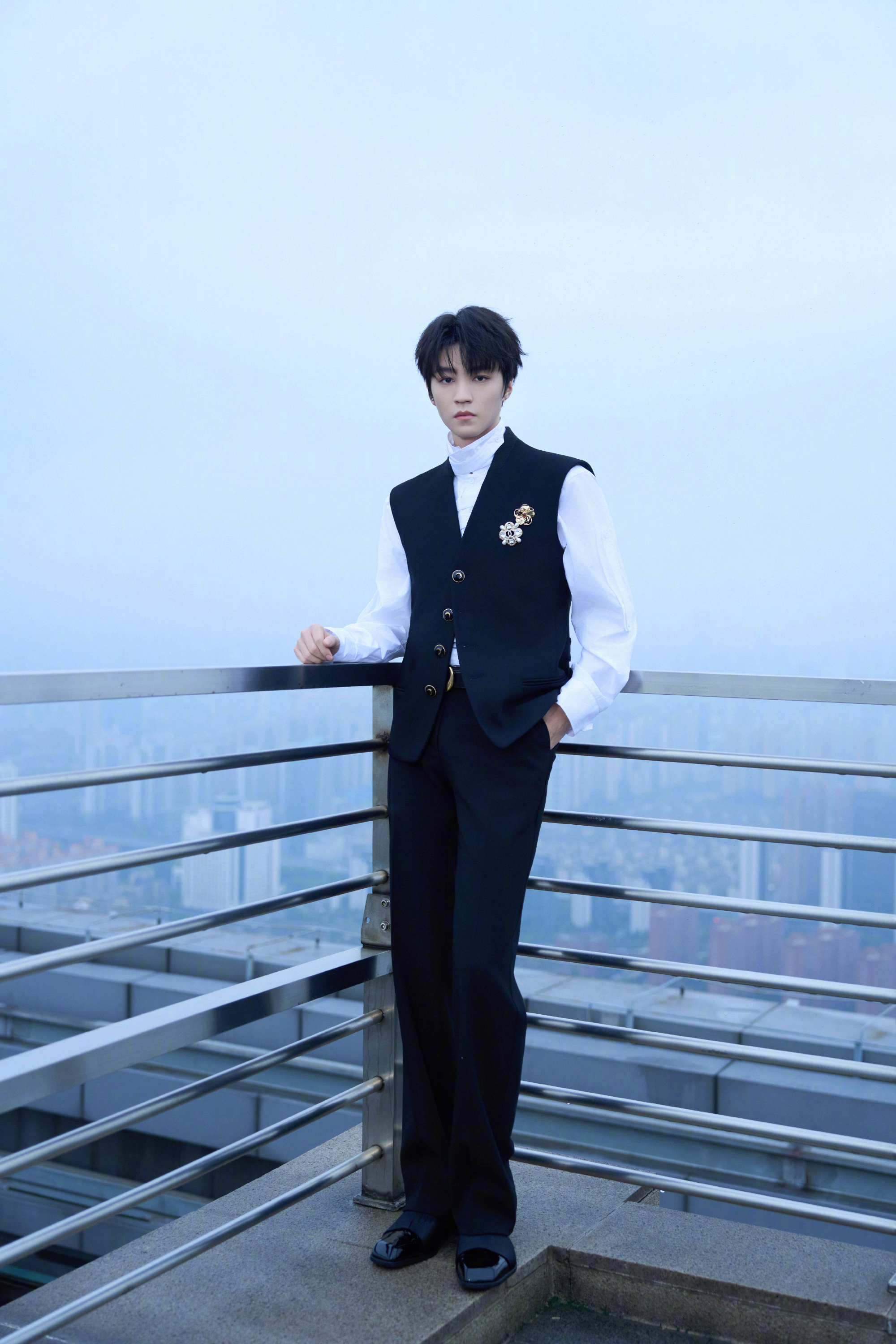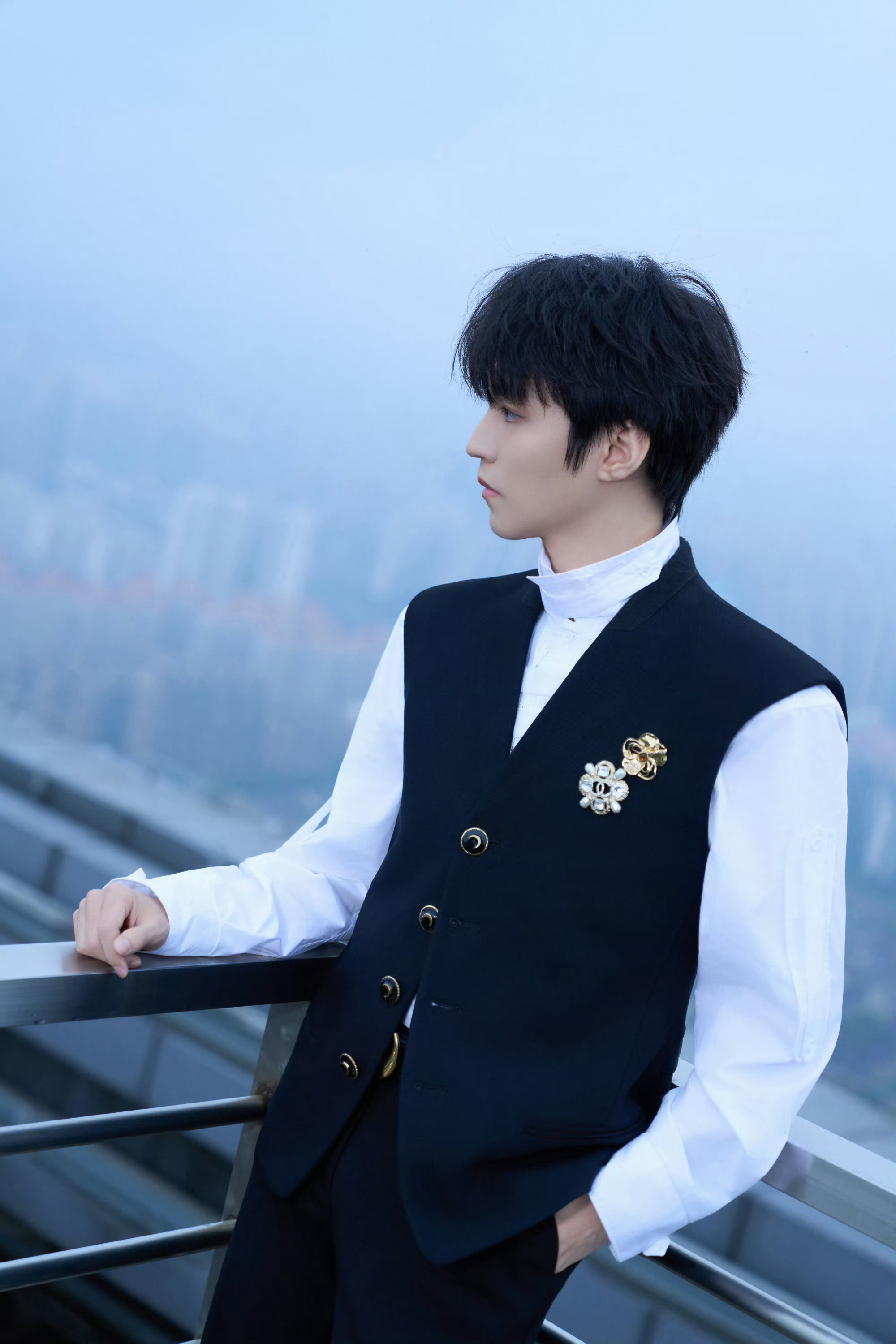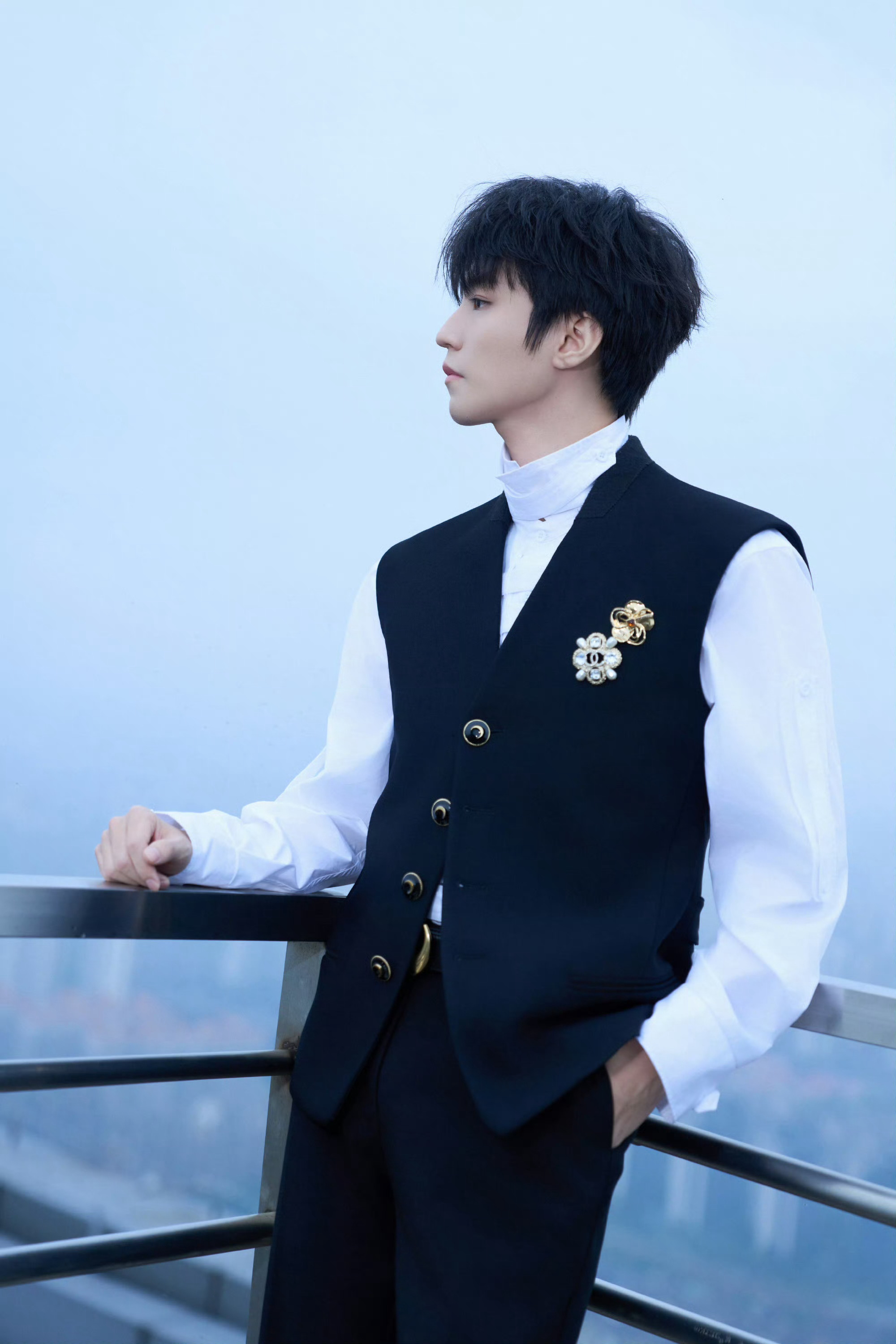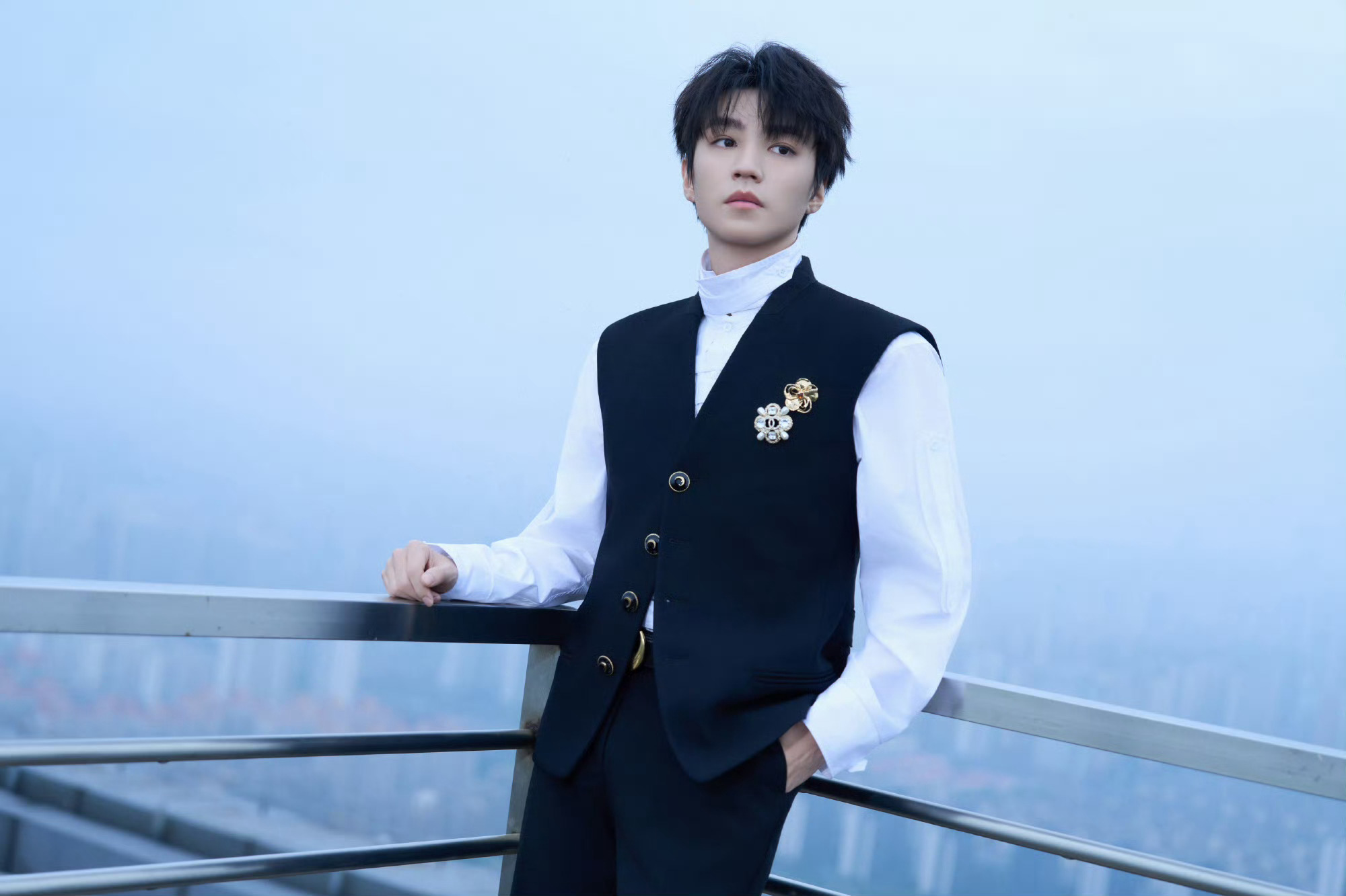 王俊凯|乘风2026新造型出图,白色衬衫配黑色马甲尽显绅士格调,缀以高级珠宝胸针,矜贵优雅!完全小王子来的👑