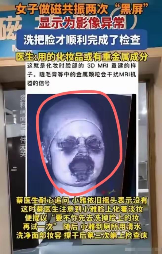 福建一个29岁妹子去医院查头颅核磁,连着两次扫描都被系统强行切断。大夫脸都绿了,反复盘问是不是偷偷整容了?还是做了纹眉、安了假牙?妹子急得直发誓,说自己从头到脚绝对原装。结果一排查,真凶居然是脸上的全妆。“眼影和粉底液直接把几百万的机器干罢工了。” 这事发生在福建一家三甲医院。放射科医生干了十五年,头一回被化妆品上了一课。 核磁共振的原理说白了就是个大号磁铁。磁场强度是地球磁场的三万倍,金属进去就跟子弹似的。 那妹子用的眼影里含氧化铁,粉底液有云母和二氧化钛。这些成分平时涂脸上没事,进了核磁舱就变成隐形杀手。 医生后来解释,机器不是“切断”,是自我保护。扫描时金属颗粒被磁场拉扯,信号乱成一锅粥,设备怕烧毁只能紧急停机。 妹子听完脸都白了。她化的是日常通勤妆,自己觉得淡得不能再淡。谁能想到“淡妆”俩字在核磁面前根本不认。 医院最后让她去卸妆间把脸洗得干干净净。连眉毛都没剩一根半根,素面朝天重新躺上去。这次一次过,全程没报错。 有网友调侃说这妹子的妆比钢板还猛。钢板好歹能提前摘了,化妆品里的金属成分是肉眼看不见的暗器。 这事暴露出一个普遍盲区。很多人知道做核磁不能带手机、钥匙、硬币,但没人提醒你脸上的粉底也得卸。 放射科护士说,她们每天都要跟病人反复确认有没有假牙、支架、钢钉。但问“你化妆了吗”,十个有九个说没有,结果躺进去就报警。 那个妹子事后发了个视频吐槽。说自己花了八百多块做检查,结果因为几十块钱的化妆品白折腾两趟。还差点被当成撒谎精。 评论区炸出一堆过来人。有人说自己做过核磁,医生让换病号服,连内衣钢圈都不能有。但从来没被要求卸妆。 还有人说她是纹眉受害者。纹眉颜料里含有氧化铁,做核磁时眉毛那块热得像火烧。医生让她刮了重纹,她没舍得。 更离谱的案例比比皆是。有人因为涂了含金属成分的身体乳,扫描时后背冒烟。有人用了含磁石粉的面膜,脸被吸得生疼。 国家药品监督管理局有明确规定。化妆品中的着色剂、防晒剂、填充剂,很多都含金属元素。日常用没问题,但核磁舱不是日常环境。 那妹子后来重新预约了检查。这次她素颜去的,还特意带了湿巾,怕路上沾了灰尘里的金属颗粒。医生说她太夸张了,她回了一句“被吓怕了”。 现在这条新闻在网上传疯了。很多医院开始在核磁预约单上加一条:请勿化妆,包括但不限于粉底、眼影、眉笔、口红。 一个小小的妆容,差点让几百万的设备停工。这不是段子,是真实发生在福建的医疗乌龙。爱美没错,但进核磁舱之前,最好先把脸洗干净。 麻烦看官老爷们右上角点击一下“关注”,既方便您进行讨论和分享,又能给您带来不一样的参与感,感谢您的支持!核磁医学 各位读者你们怎么看?欢迎在评论区讨论。