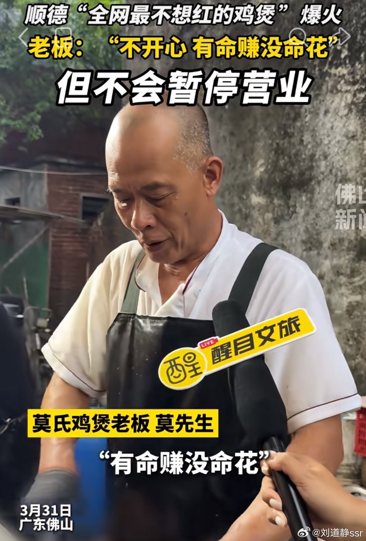 佛山鸡煲太火爆老板开小号黑自己老板正在经历互联网的马太效应他拼命自黑想降温,网友偏要把店挤爆。越红越有人捧,越冷越没人理。想休息都身不由己,被流量绑架了。