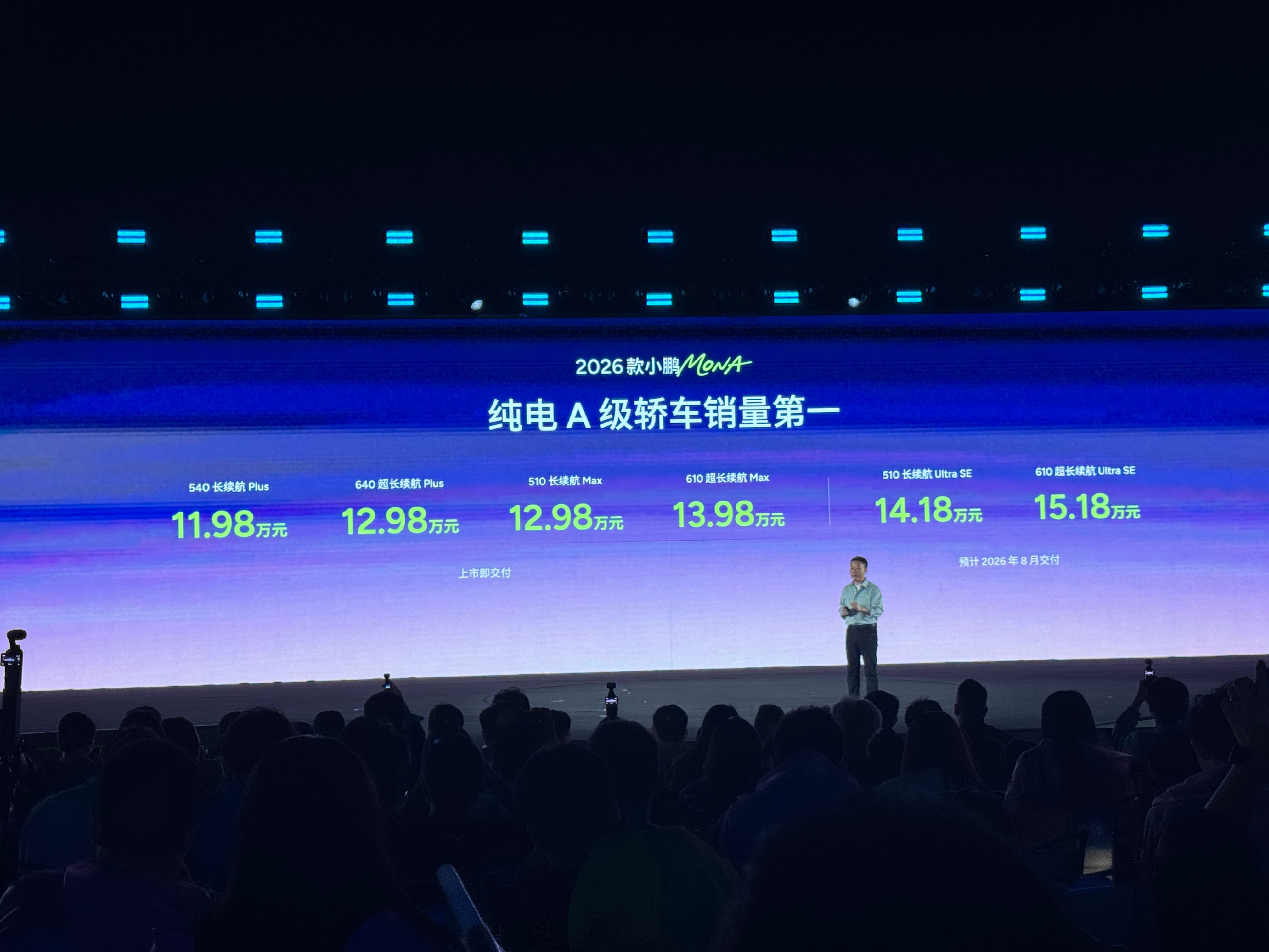 2026款小鹏MONA M03正式上市,六款车型价格如下:• 540 长续航Plus:11.98万• 640 超长续航Plus:12.98万• 510 Max:12.98万• 610 Max:13.98万• 510 Ultra SE:14.18万• 610 Ultra SE:15.18万全新推出罗兰紫、牛油果绿两款高颜值车漆,活动期内选这两个颜色都不用额外加钱,个性又划算,外观够潮、续航扎实,智能驾驶也很能打,妥妥年轻人第一台纯电轿车~欧阳娜娜同款小鹏MONA起售价11.98万2026款小鹏MONA大大大大大升级