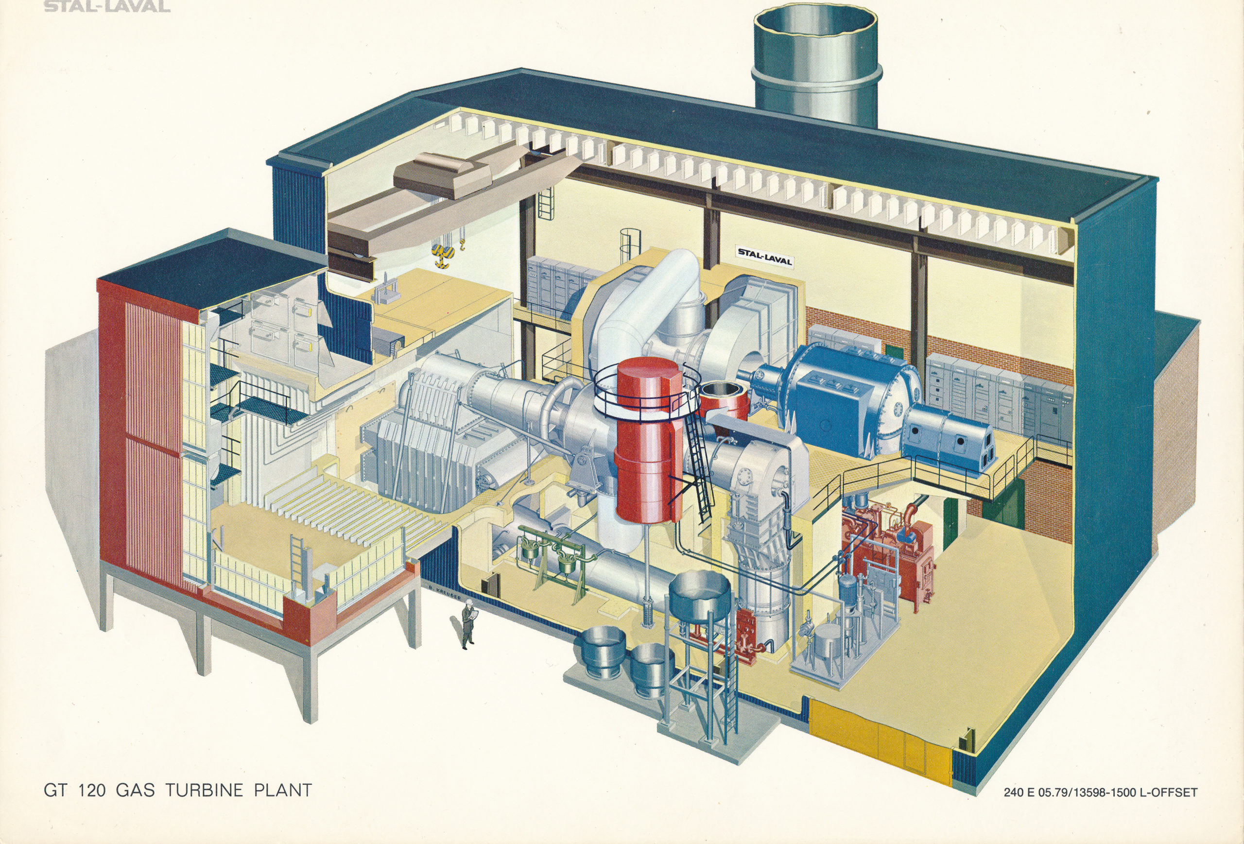电站的机房建在山洞内,机房装有瑞典Stal-Laval公司制造的GT-120B型燃气轮机和瑞典通用电气公司的TYTEEFTA 85/270型发电机,卸油栈台、油泵房等设施则位于洞外。