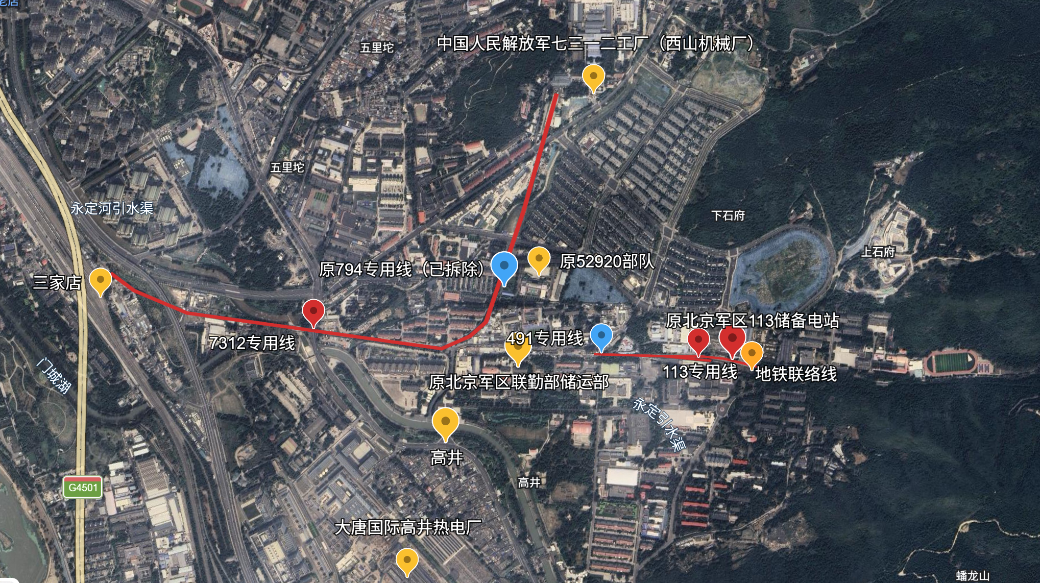 目前113电站机组已封存,专用线被其它建筑物覆盖。
