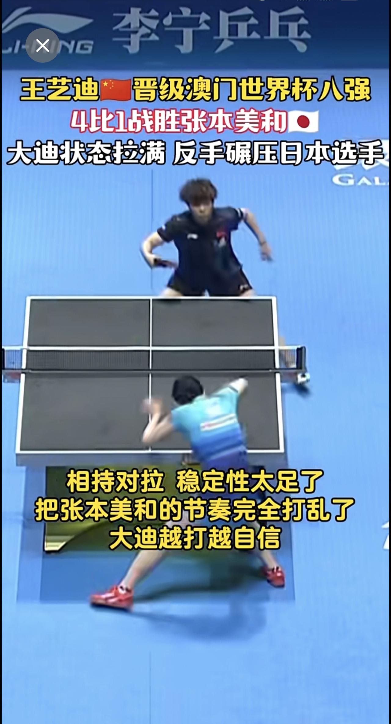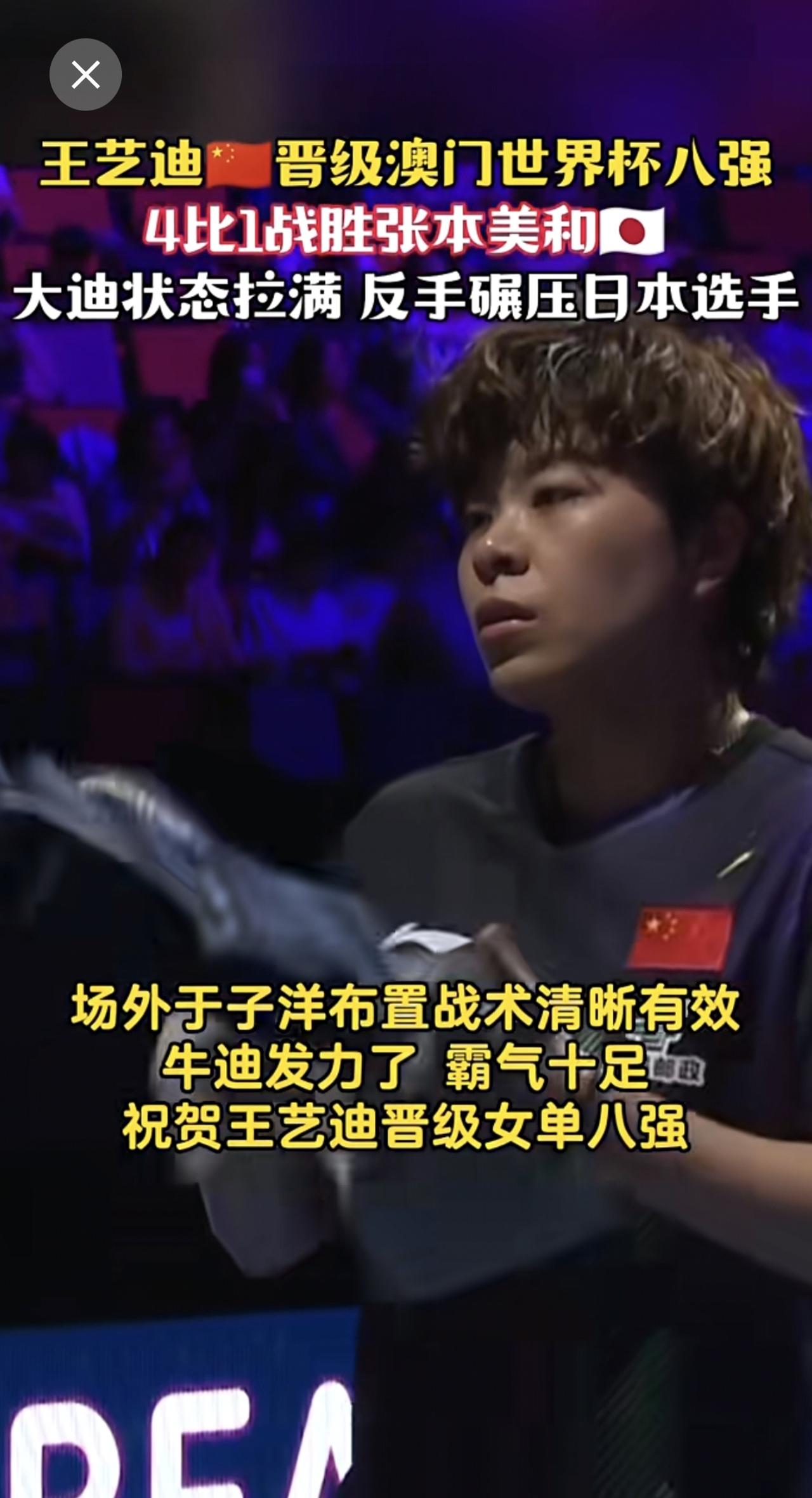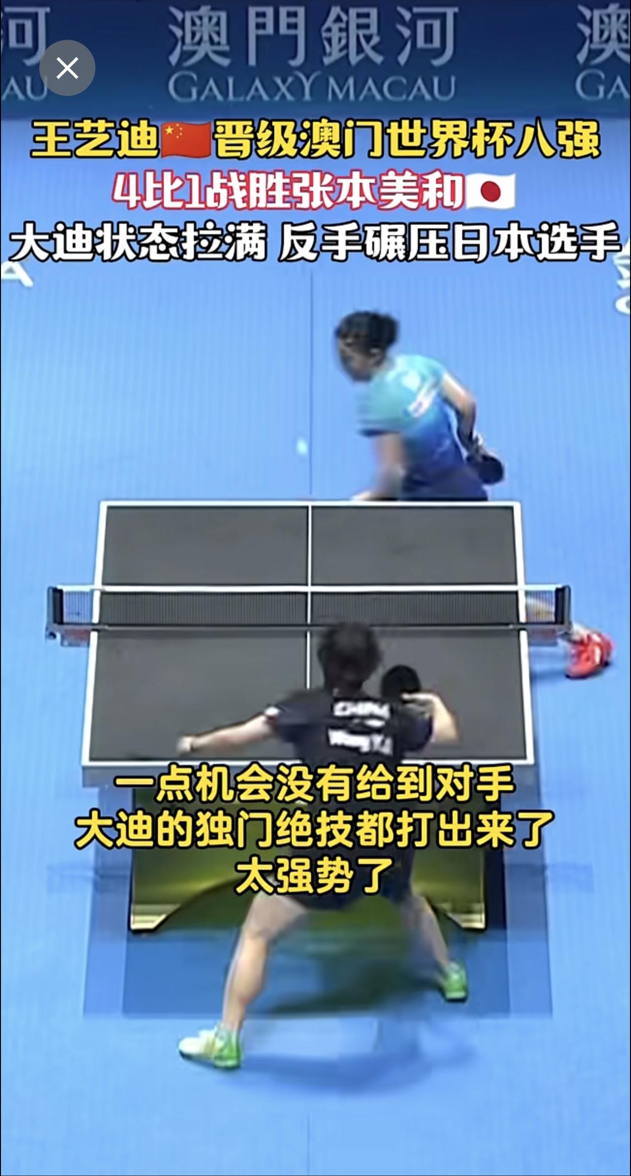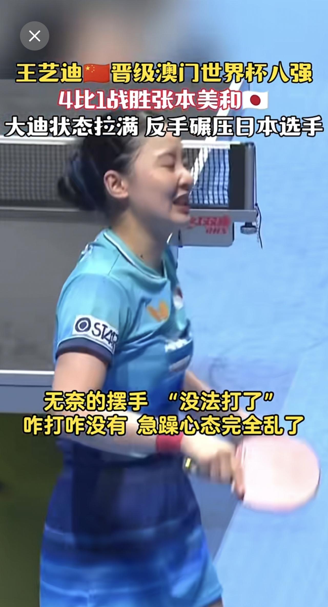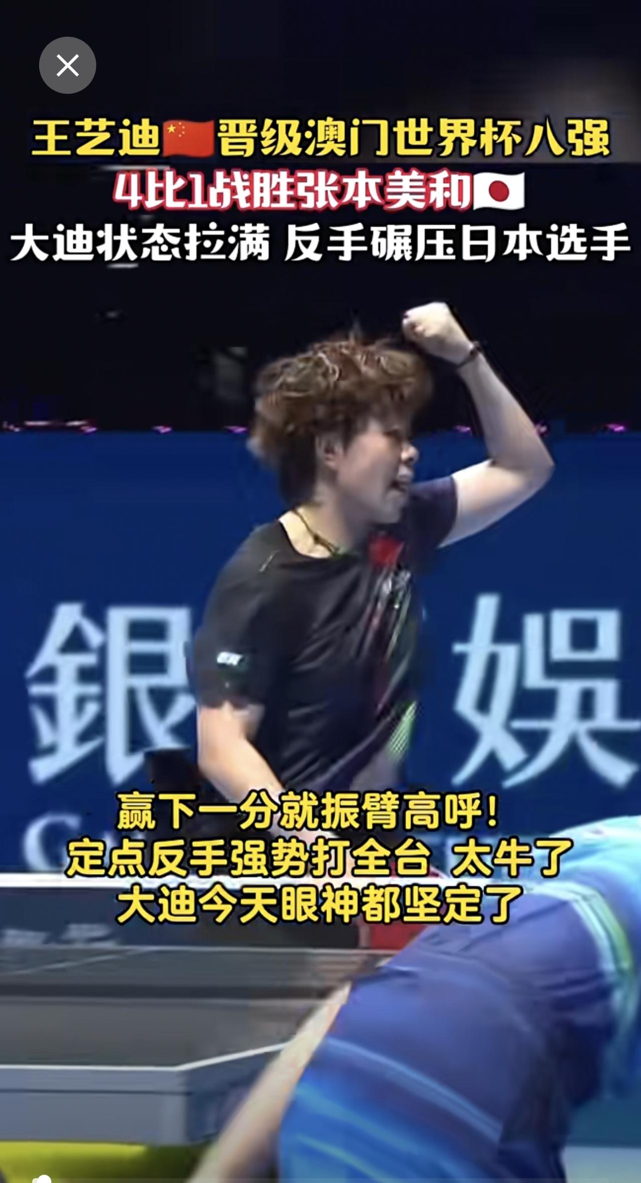 王艺迪🇨🇳晋级澳门世界杯八强 4比1战胜张本美和🇯🇵状态拉满 反手碾压日本选手 赢下一分就振臂高呼!大迪今天眼神都坚定了!