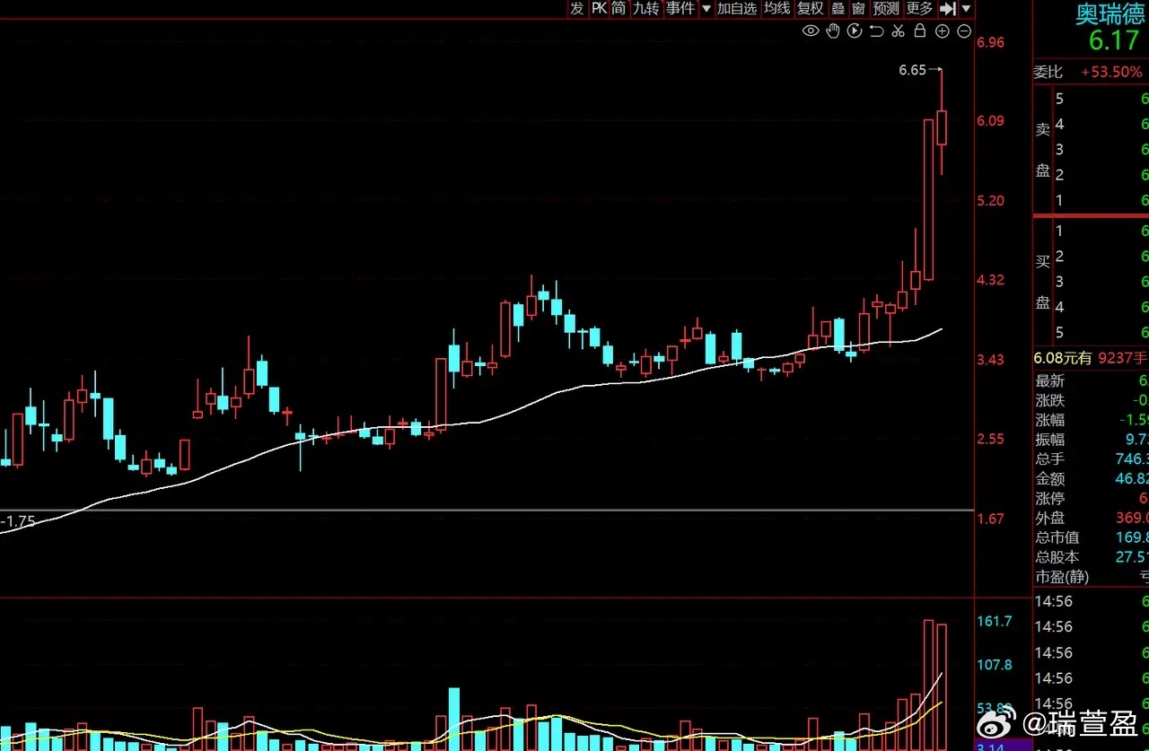 第四家是奥瑞德,主营算力服务与蓝宝石材料,是当前算力租赁板块中的低价人气龙头。该股周线自3月中旬起突破前期整理平台进入加速阶段,此前更是走出8天5板的强势行情。