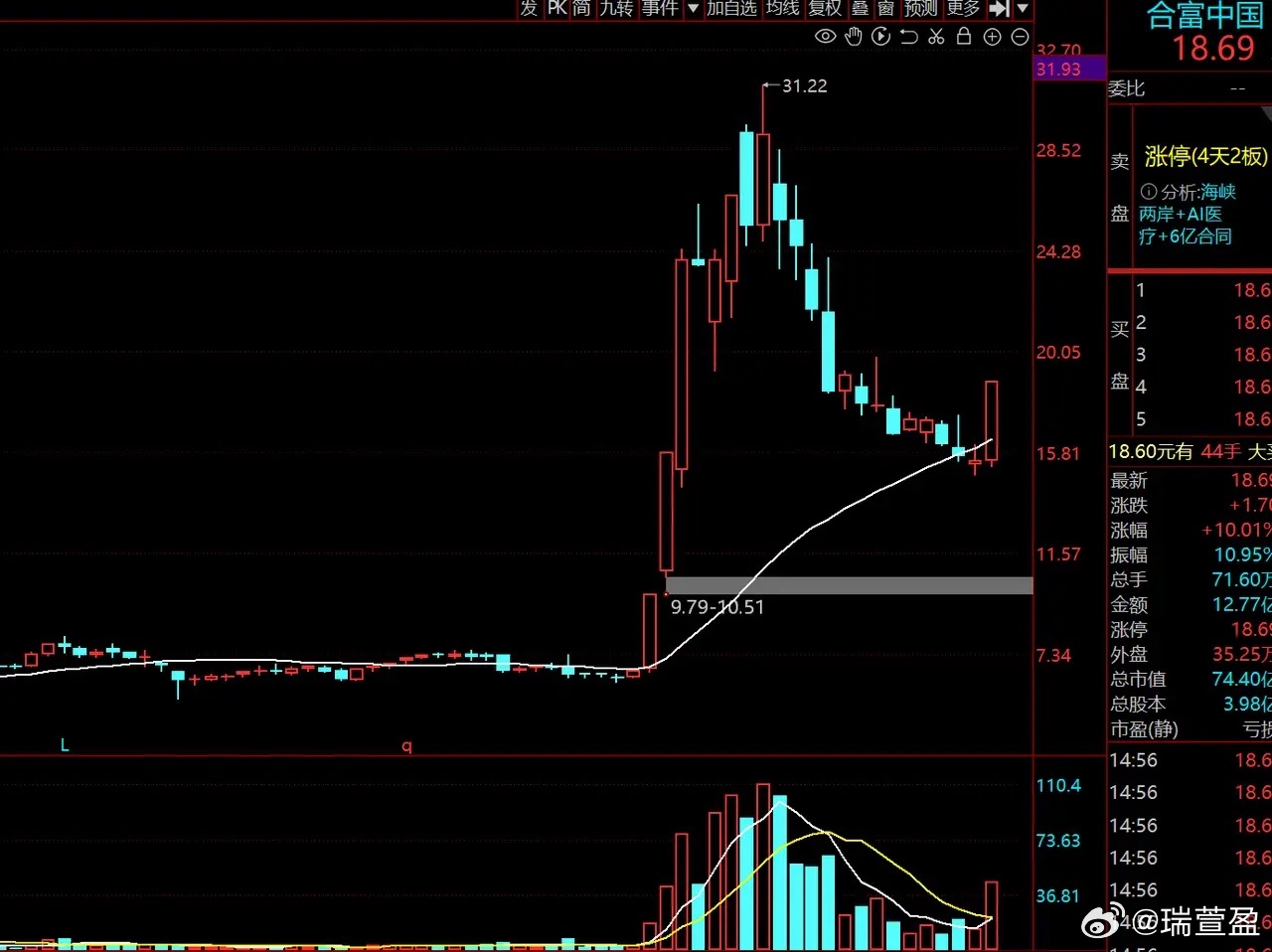 第三家是合富中国,同样归属海峡两岸题材阵营,一定程度上受益于题材命名带来的市场关注度。其周线走势与平潭发展相近,区别在于平潭发展以双底形态完成调整,而合富中国回撤幅度更深,直至周线均线位置才获得支撑,走势相对偏弱,近期录得4天2板。