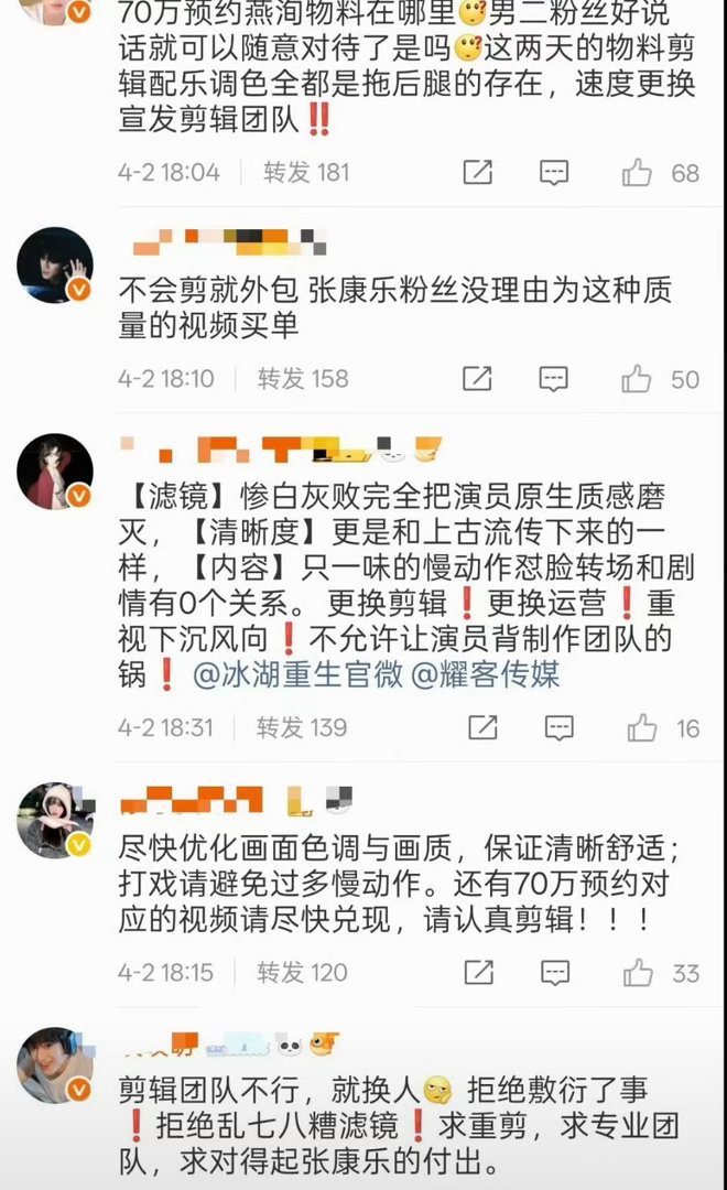 张康乐粉丝维权,说冰湖重生区别对待张康乐,单人视频、元旦祝福、官博点👍🏻十几番都有,独独漏了张康乐。张康乐为冰湖付出了很多。