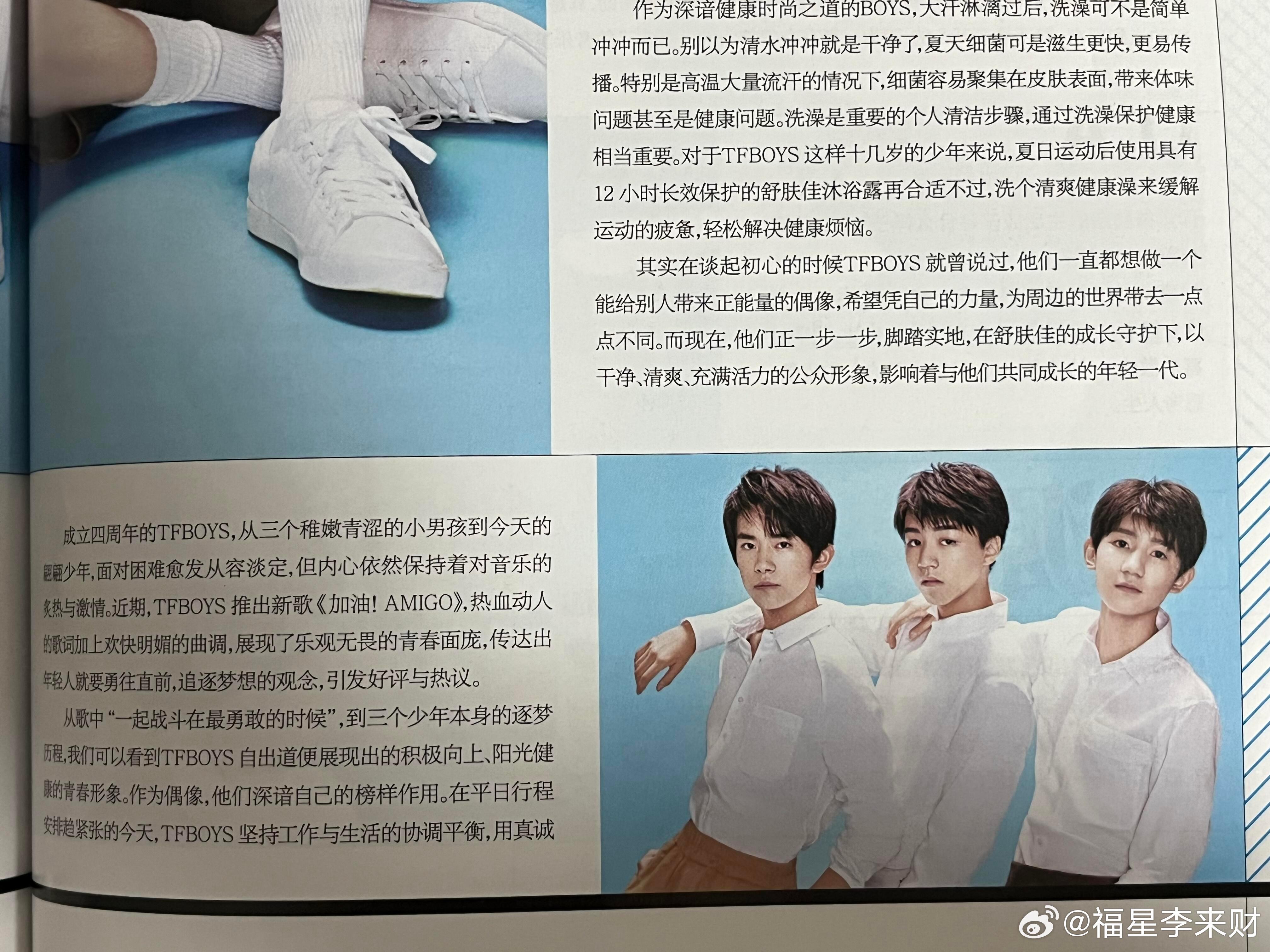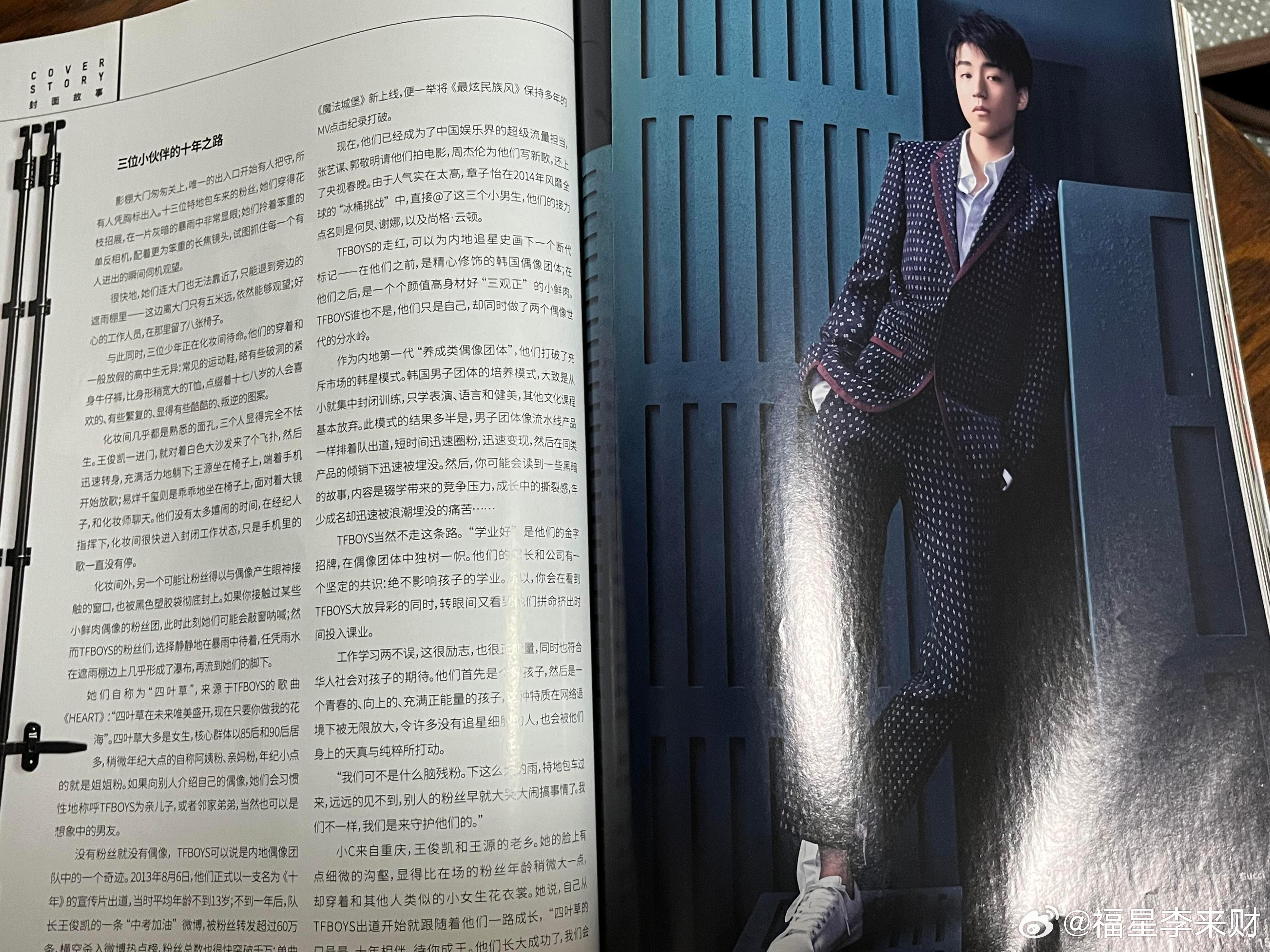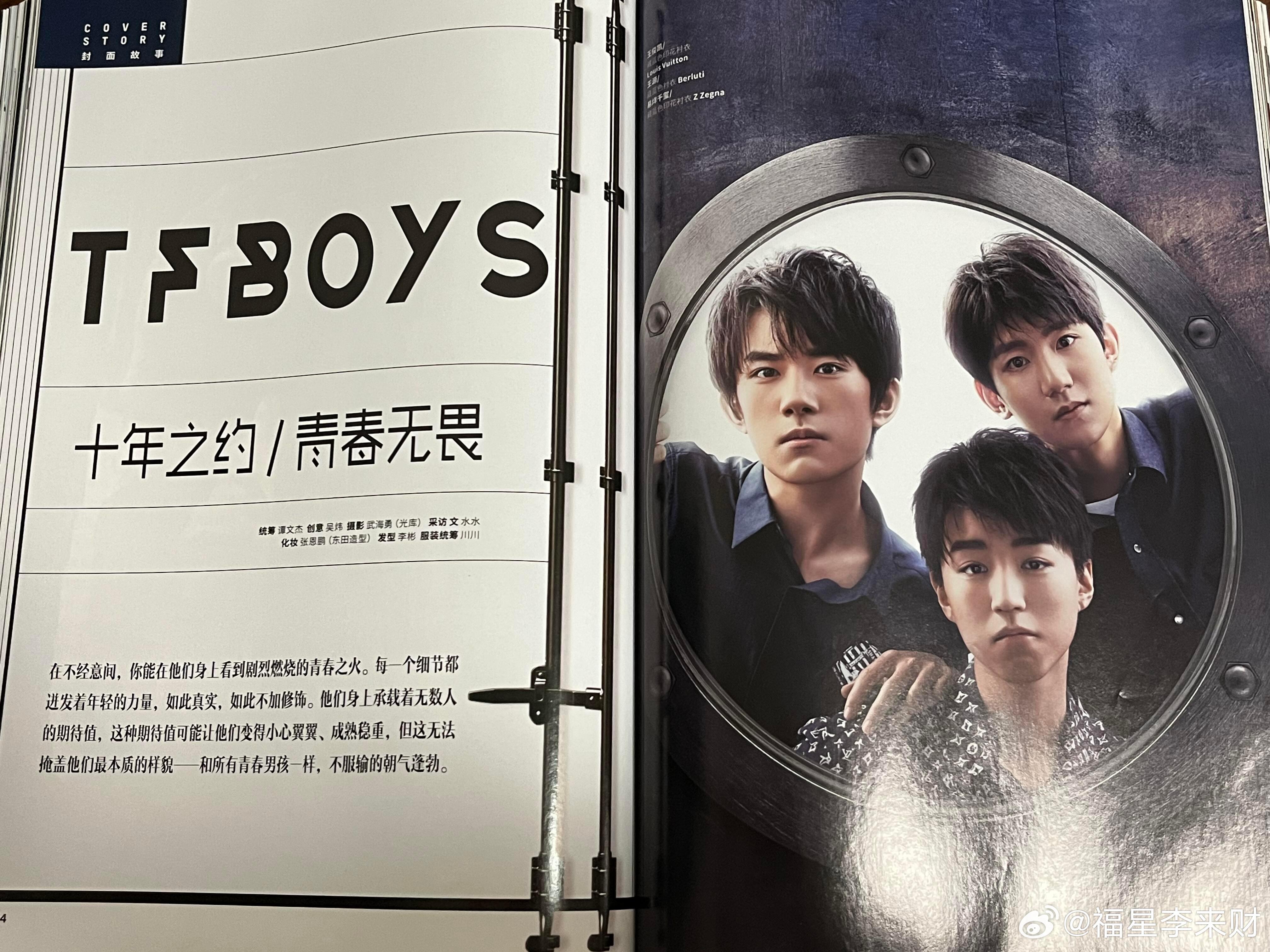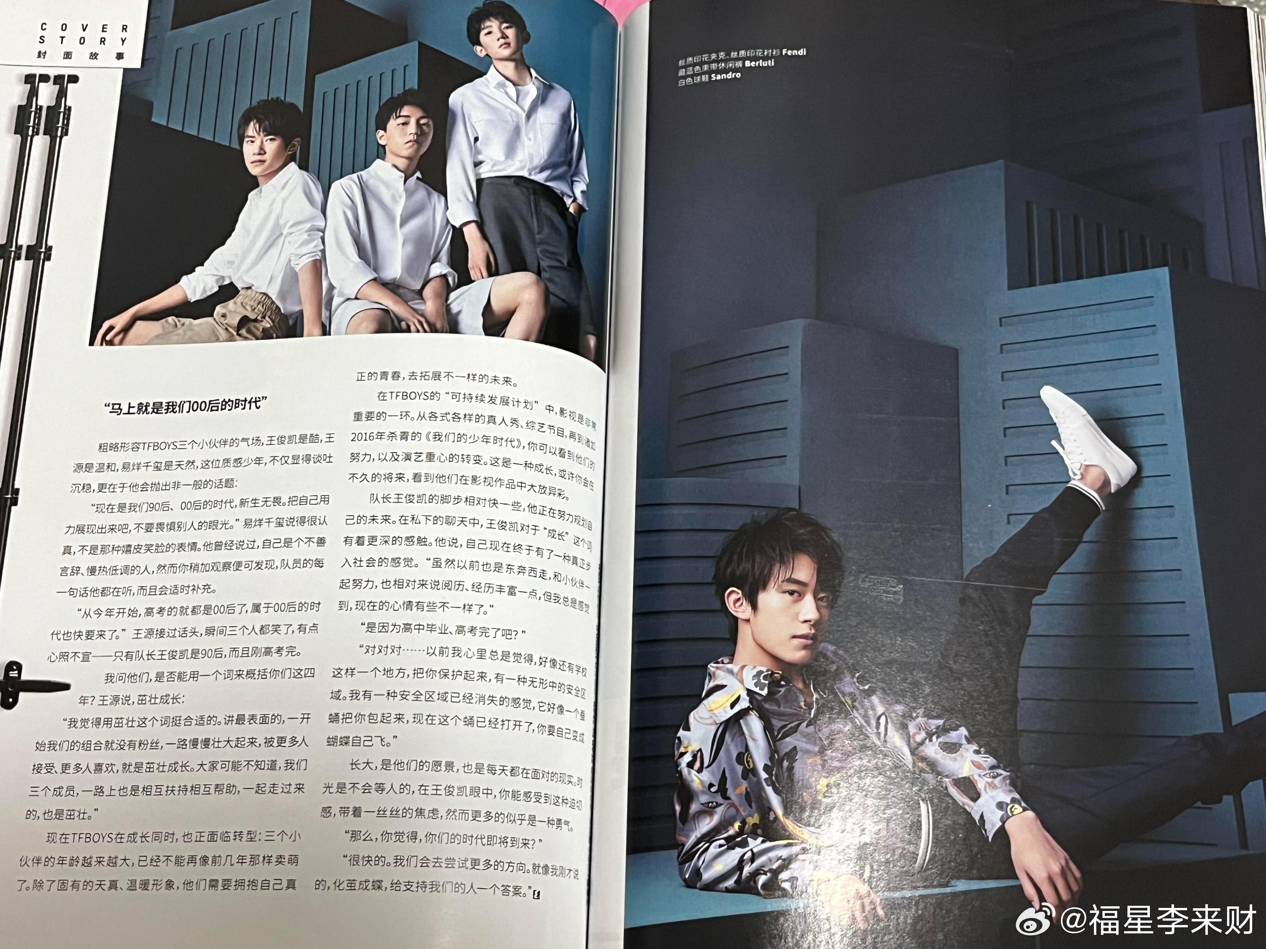 合体的杂志已经是十年前了…收拾出2017年8月期刊的杂志 是三个人的合照《我们的少年时代》刚刚杀青一年王俊凯刚高考完王源、易烊千玺刚步入高三