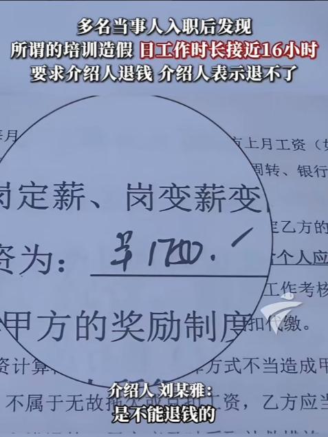“太离谱!”广东,一女子找中介,花28000元进高铁站当安检员,本以为拿到了高薪的铁饭碗,岂料,却发现月工资才1750元,而且每天要干16个小时,女子认为受到欺骗,要求中介退钱却遭拒,报警也未立案。 广东一女子常年在外打工,没什么学历和技能,一直想找一份稳定体面的工作,不用四处奔波。偶然间,她看到中介发布的招聘信息,声称能介绍进入高铁站当安检员,稳定高薪,堪比“铁饭碗”,只是需要缴纳一笔介绍费。 女子被“稳定高薪”四个字打动,连忙联系中介咨询。中介把岗位吹得天花乱坠,说安检员工资高、福利好,工作轻松,不用风吹日晒,只要交28000元介绍费,就能直接安排入职,不用考试,不用面试,全程包办。 想着能拥有一份稳定的“铁饭碗”,不用再四处漂泊,女子动了心。她掏空了自己多年攒下的积蓄,又向亲戚朋友借了一部分,凑齐了28000元,一次性转给了中介,满心期待着早日入职,开启新的工作生活。 交完钱后,中介很快就安排女子办理了入职手续,送她去高铁站上岗。女子穿着崭新的安检制服,站在安检岗位上,心里满是欢喜,觉得自己花的28000元很值,终于能拥有一份稳定又体面的工作了。 可这份欢喜,仅仅持续了一天就彻底破灭了。下班时,女子询问同事工资情况,得知自己的月工资竟然只有1750元,连当地最低工资标准都没达到,这和中介承诺的“高薪”,简直是天壤之别,她瞬间就懵了。 更让她崩溃的是,这份月薪1750元的工作,每天要工作整整16个小时,从早上6点一直干到晚上10点,中间只有40分钟的吃饭时间,全程站立,连坐下来休息的机会都很少,一天下来,累得浑身酸痛,连抬手的力气都没有。 女子越想越不对劲,中介承诺的高薪、轻松、福利好,没有一样兑现,反而每天要干16个小时的高强度工作,拿着微薄的工资,这根本不是什么“铁饭碗”,分明是花钱买罪受,她意识到自己被中介欺骗了。 第二天,女子就请假去找中介,要求退还自己缴纳的28000元介绍费。她反复说明自己的遭遇,诉说中介的欺骗行为,可中介却态度强硬,一口拒绝了她的退款要求,还说钱已经用于“打点关系”,成交后就不退。 中介的态度让女子彻底愤怒了,她反复和中介争执,可中介始终不肯松口,甚至开始避而不见,后来干脆不接她的电话、不回她的消息,彻底失联。女子看着自己手里的缴费凭证,心里满是无助和委屈。 被逼无奈之下,女子只能选择报警,希望警方能介入调查,帮自己追回被骗的28000元。她带着缴费凭证和自己的入职记录,详细向民警说明事情的经过,满心期待着能得到一个公正的处理结果。 可让她没想到的是,民警经过初步调查后,告知她这件事属于民事纠纷,不符合立案条件,无法立案侦查,只能建议她通过协商或者法律诉讼的方式,向中介索要退款,这一结果,让女子彻底陷入了绝望。 她后来才知道,中介收取的28000元介绍费,根本没有用于所谓的“打点关系”,而是被中介私自截留,变成了纯利润。这类花钱买岗的骗局,中介早已设计好甩锅链条,收费无正规发票,合同条款模糊,维权难度极大。 女子不甘心自己的28000元就这样打水漂,她四处打听中介的下落,反复寻找相关部门求助,可要么被拒绝,要么被推诿,始终没有得到一个明确的答复。她每天奔波在维权的路上,身心俱疲,却始终没有进展。 如今,女子依旧在为追回28000元介绍费而奔波,可维权之路格外艰难。她的遭遇,也给很多急于找稳定工作的人敲响了警钟,那些声称“花钱买岗、高薪稳定”的招聘,背后往往藏着不为人知的骗局。 对此,你们有什么看法,欢迎评论留言~