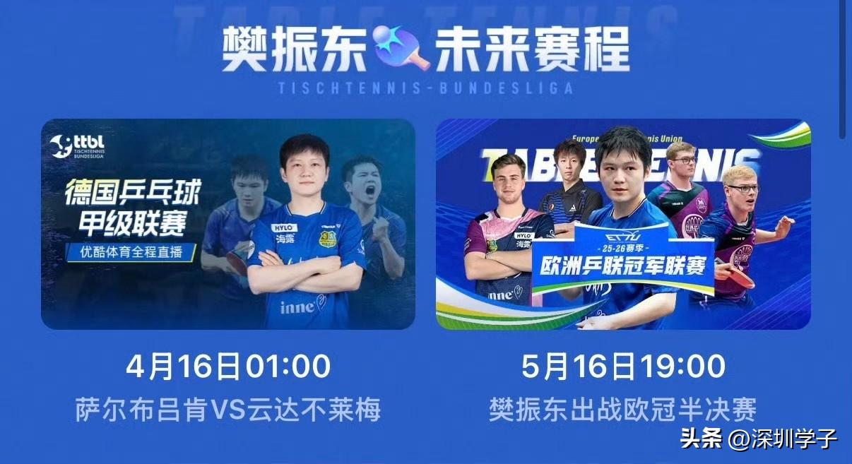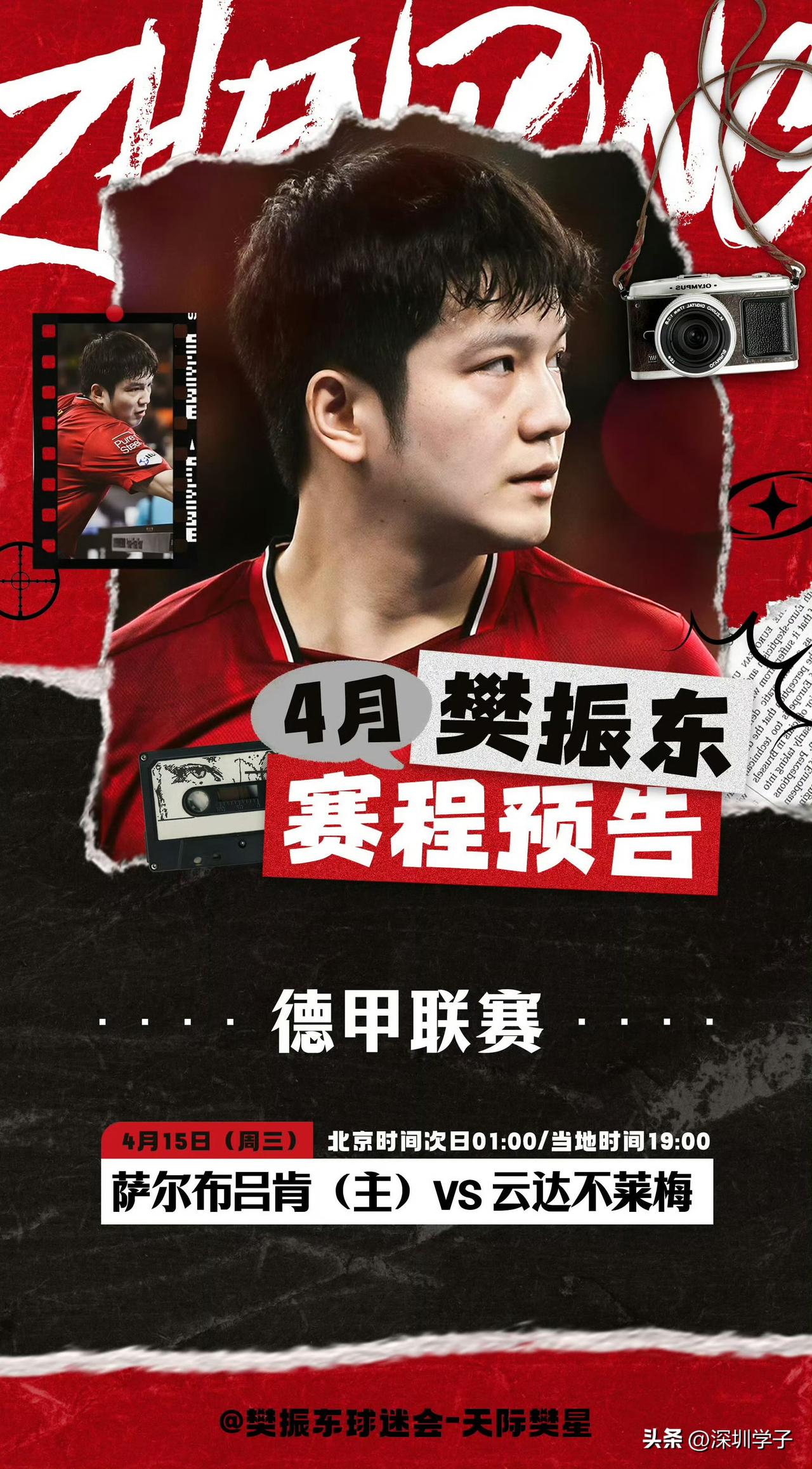 什么?现在正在打世界杯?我不知道我真的不知道。 什么?世界杯中国队男队五名球员出征,其中三名球员小组赛没出线?我不知道我真的不知道。 没有樊振东的比赛我真的不关心,我最多最后比赛结束看一下冠军名单,甚至我认为没有樊振东的比赛,就算冠军也是水冠,没有绝对的含金量。 是的,我只关心樊振东的比赛,目前确定,北京时间4月16日凌晨一点樊振东将出席不莱梅的比赛,到时候,我一定收看。