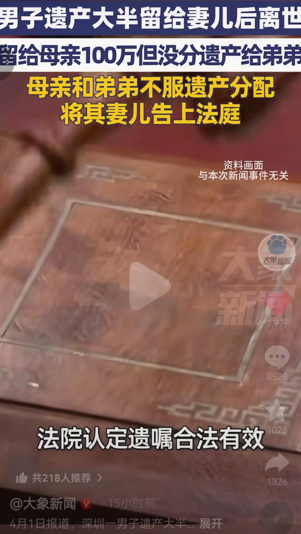 深圳男子留100万给母亲,房产全给妻儿!亲妈亲弟直接起诉,法院判决太解气!