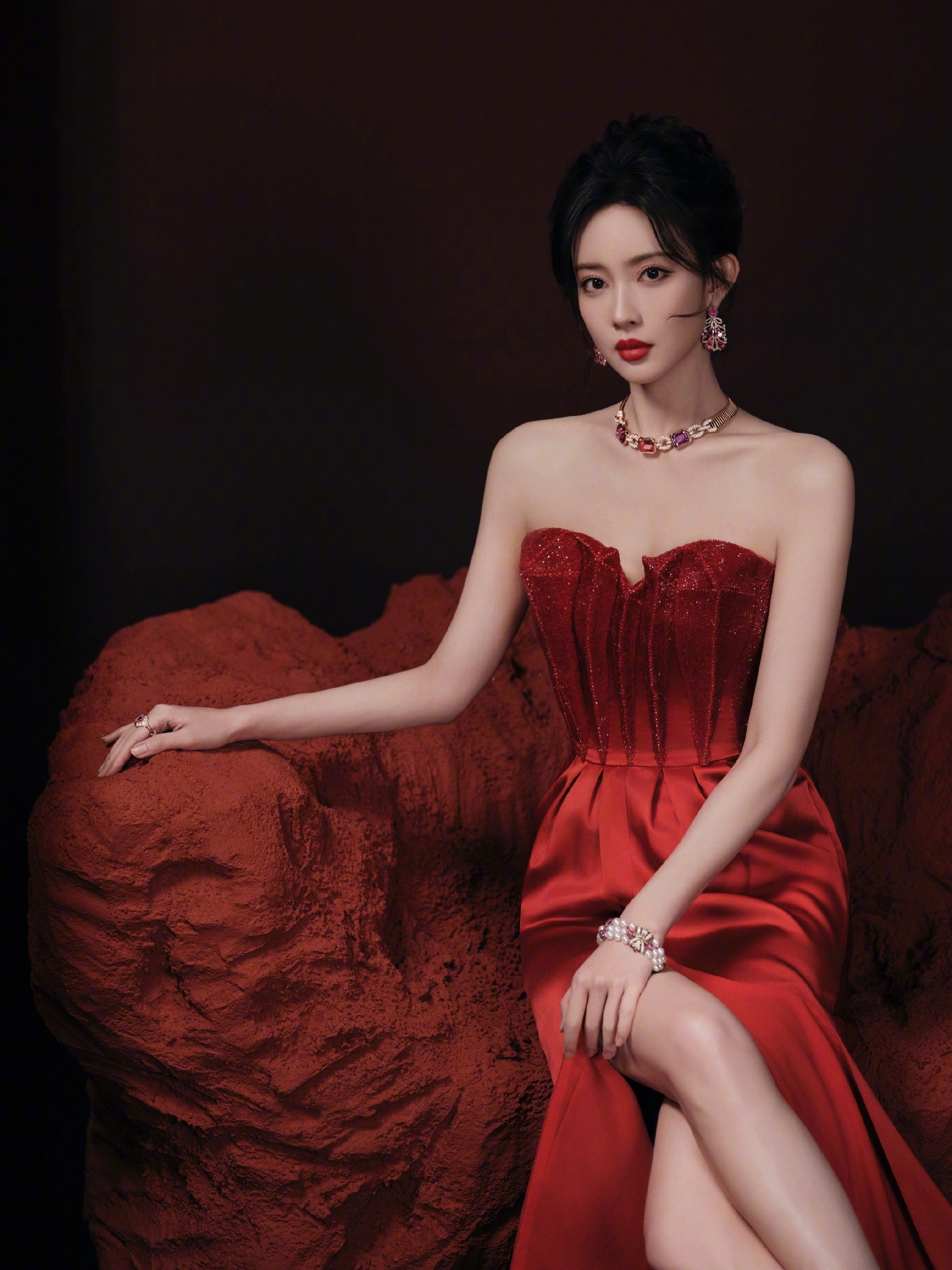 孟子义经典裙装,红裙高跟大长腿,真实精致优雅。孟子义