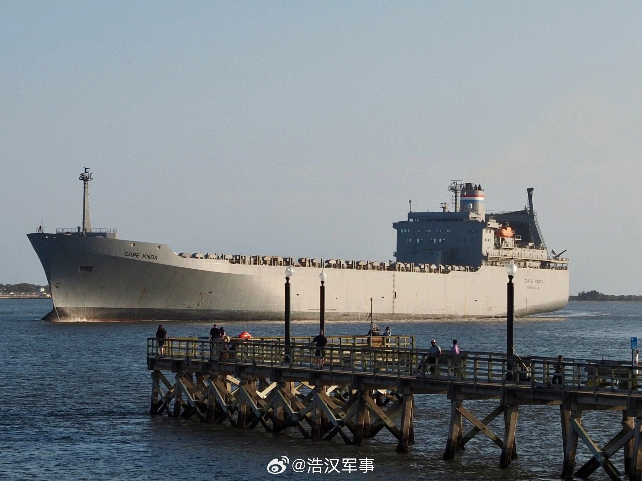 全球武器装备盘点每天认识一件兵器烽火问鼎计划 2026 年 4 月 1 日,隶属于美国海运管理局(MARAD)的“诺克斯角”号(AKR-5082)车辆运输船,作为预备役快速反应部队(RRF)的一员,驶入北卡罗来纳州的军事海洋终端桑尼波因特(MOTSU)。