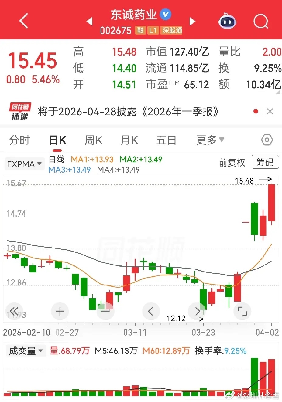 诚药业:四阳夹一阴,形态偏强,一字跳空虽略显悬空,但能反包倍量长阴,整体结构不错,后续是否回踩看主力节奏。