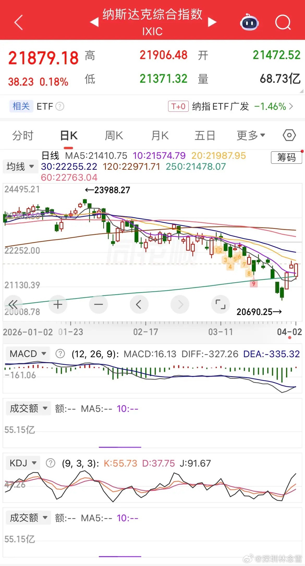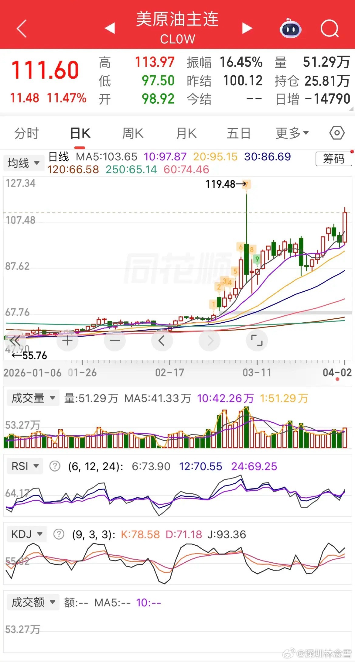 昨夜全球市场大分化:美原油暴涨超11%,美股深V大反攻;现货黄金大跌超2%,白银重挫超4%。热门中概股普跌,纳指金龙指数跌0.34%,阿里、京东跌超1%,百度、拼多多小幅下跌,B站微涨,小鹏、蔚来逆势走强;富时A50涨0.6%,恒生主连涨0.5%,港股今日因复活节休市。