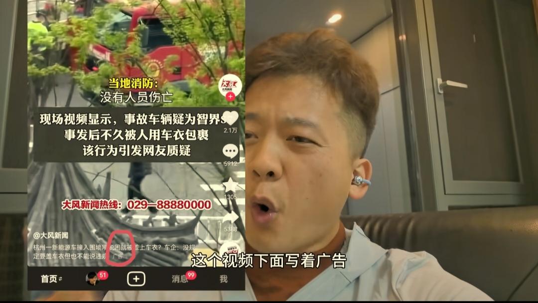 博主“耗子发威”说,眼看着鸿蒙智行有一批新车准备上市,有些媒体被投流后连装都懒得装了。我看了“耗子发威”放出来的截图后才发现,原来商战就是这么“朴实无华”啊! “耗子发威”放出来的截图显示,一家叫“大风新闻”的媒体在“报道”智界的一起车祸时,这条所谓的“车祸新闻”的视频文案后面,居然赫然标注有“广告”两个字。报道事故新闻却带有广告标识,应该是工作人员在后台忘记编辑就发出来了。不是,这也太离谱了吧?难怪“耗子发威”说它连装都不装了。 众所周知,媒体有偿发布的内容才叫“广告”。可是,事故“新闻”竟然是收钱发布的“广告”,这背后的商业操作不用想都知道怎么回事了。作为媒体,报道车祸事故,以期警醒大家注意交通安全,这本来无可厚非,可是,用“广告”的形式来让大家去关注一起交通事故,这样的媒体和黑公关有什么区别?公众还能指望从它这里获得公正客观的信息和事实真相吗? 而且我发现,在“耗子发威”揭穿这件事情的视频下面,居然显示着一行很大字号的搜索词条:“相关搜索·华为车负面报道”。如果不是自己亲眼所见,真的不敢相信啊,真的连装都不装了。 汽车圈有这样的舆论环境,难怪车企的法务越来越忙了。看来,鸿蒙智行的这批新车让某些人紧张了。华为入局智驾的鲶鱼效应 鸿蒙智行 鸿蒙智行车