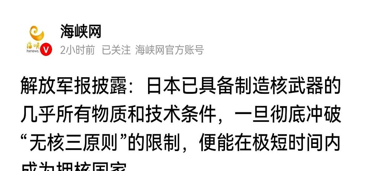 解放军报突然掀了桌子,把一个数字砸了出来:44.4吨。 这是日本家里藏着的分离钚,足够造5500枚核弹。 这批东西,就静静地堆在仓库里,隔着一层薄薄的“无核三原则”,下面就是万丈深渊。技术,没门槛。时间,不是问题。只要他们点头,一夜之间,地图都得重画。 最关键的是旁边那个看牌的。 大洋彼岸,那双鹰一样的眼睛,明明知道牌桌上有人在袖子里藏牌,却只是静静地看着,不说一句话。 他甚至觉得,只要对方是听自己的,多几张王牌,在另一场更大的牌局里,能帮自己赢。 所以,这声警告,与其说是喊给那个正在磨刀的人听的,不如说是敲山震虎,让那个默许一切的“盟友”也竖起耳朵。 这牌桌上,不能再有人假装看不见了。