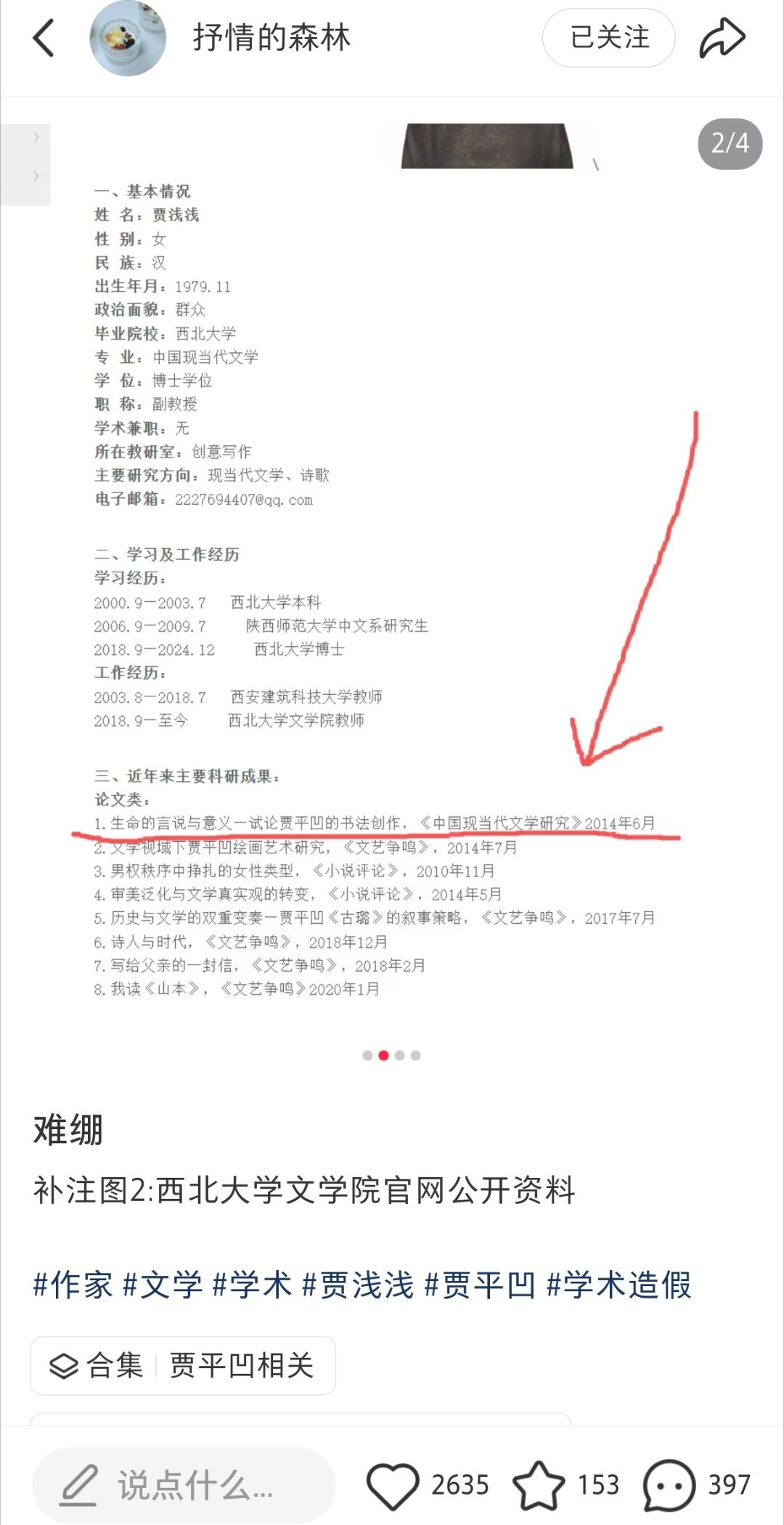 难绷,贾浅浅的论文被扒出来抄袭她亲爹贾平凹…………