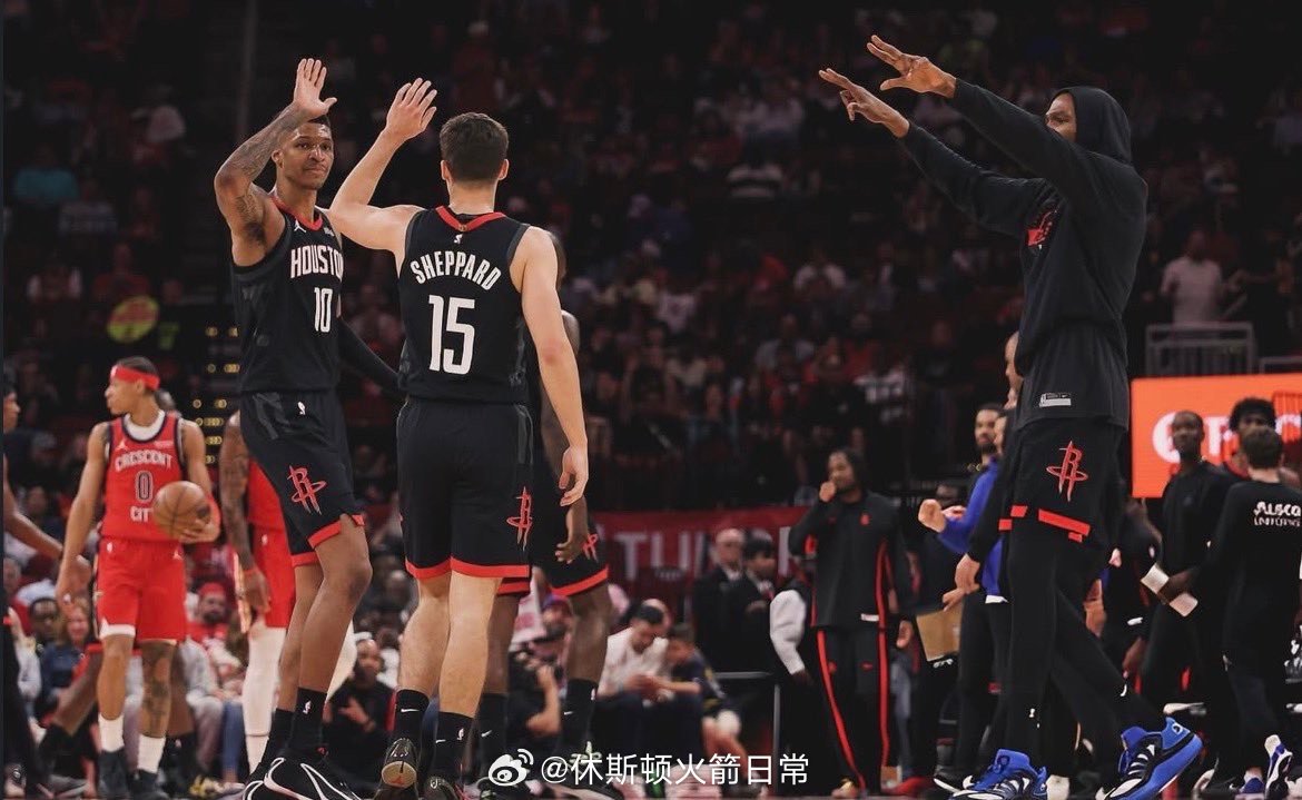 谢泼德本赛季首发17场比赛,场均16分5.3助攻4.2篮板2.2抢断1盖帽,三分命中率38.3%,真实命中率56%,火箭13胜4负