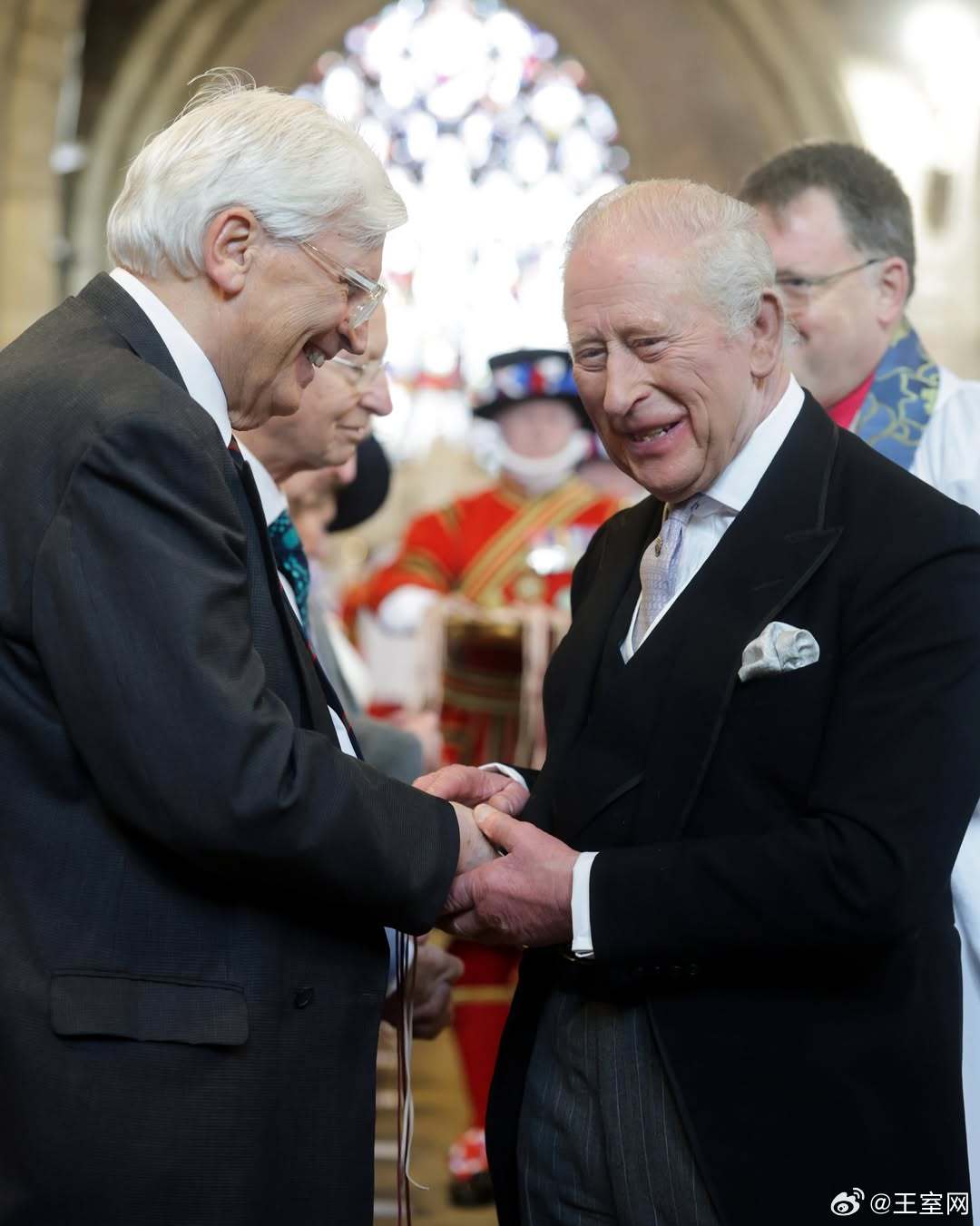英国王室 🇬🇧4月2日,查尔斯国王和卡米拉王后在北威尔士的圣阿萨夫大教堂出席皇家濯足礼仪式。世界各国王室新闻 仪式期间,国王向来自威尔士及英国其他教区的约77位男士、77位女士赠送了皇家濯足节礼物并颁发濯足节纪念币,旨在表彰获奖者杰出的基督教服务贡献,以及他们为当地社区带来的积极影响。