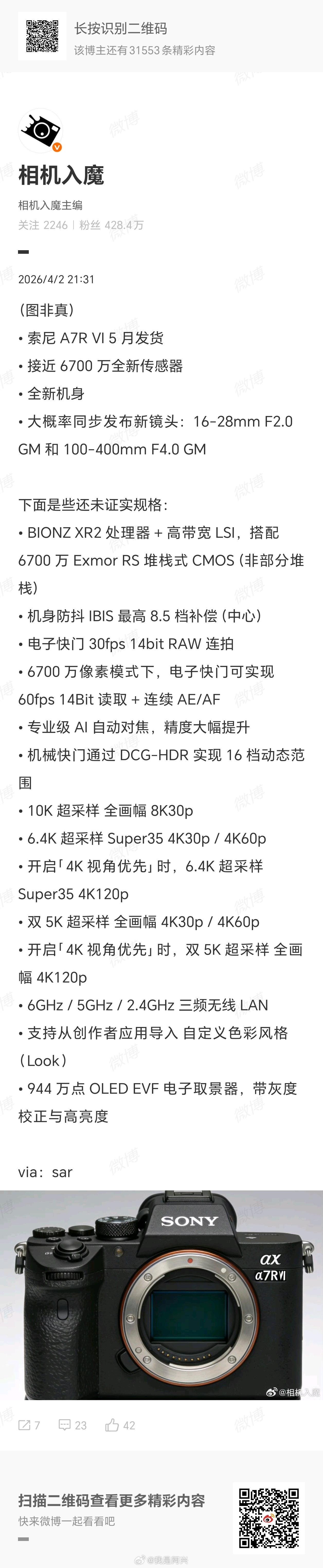 6700万像素的全堆栈传感器,索尼这次牙膏挤爆。