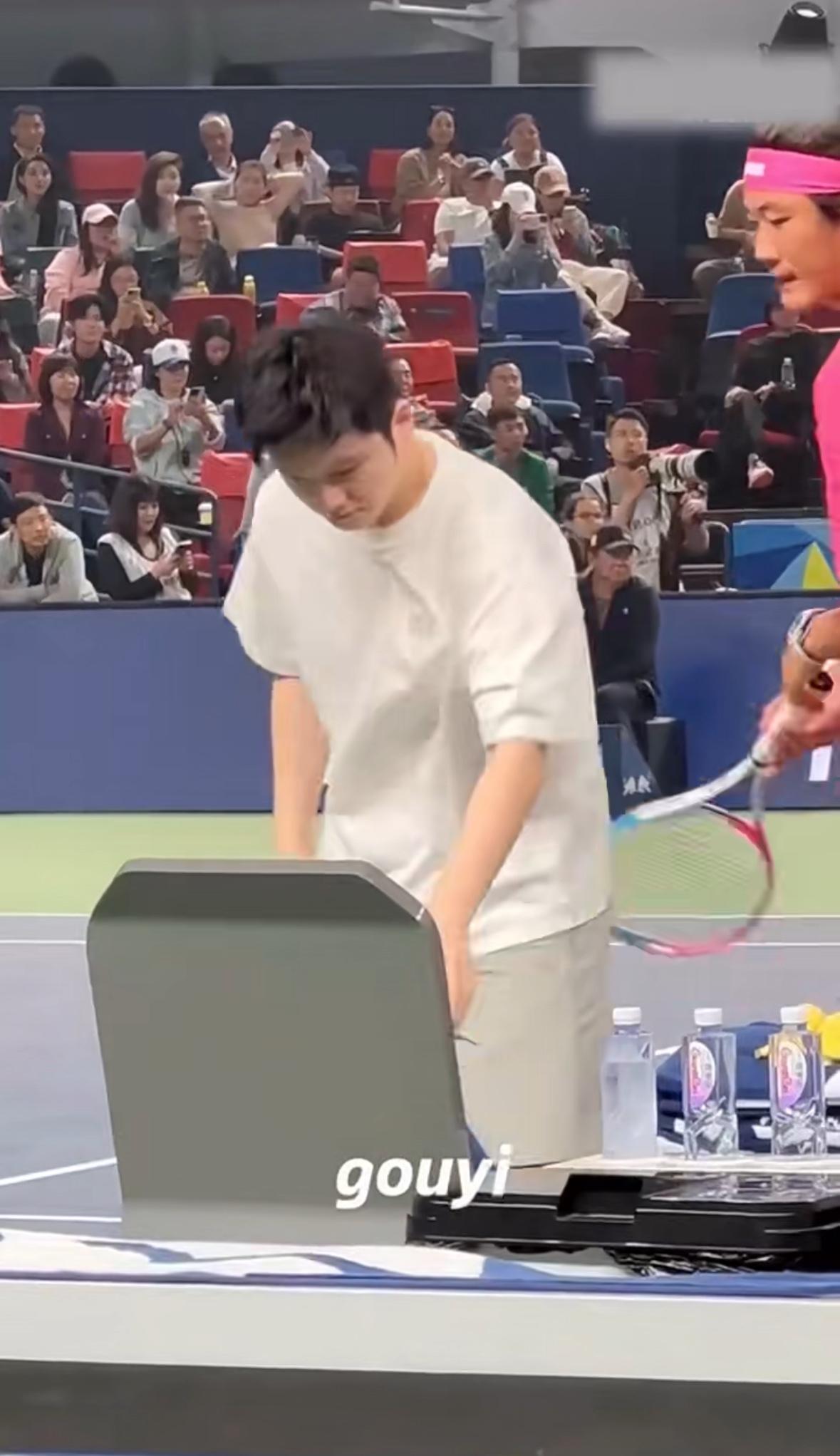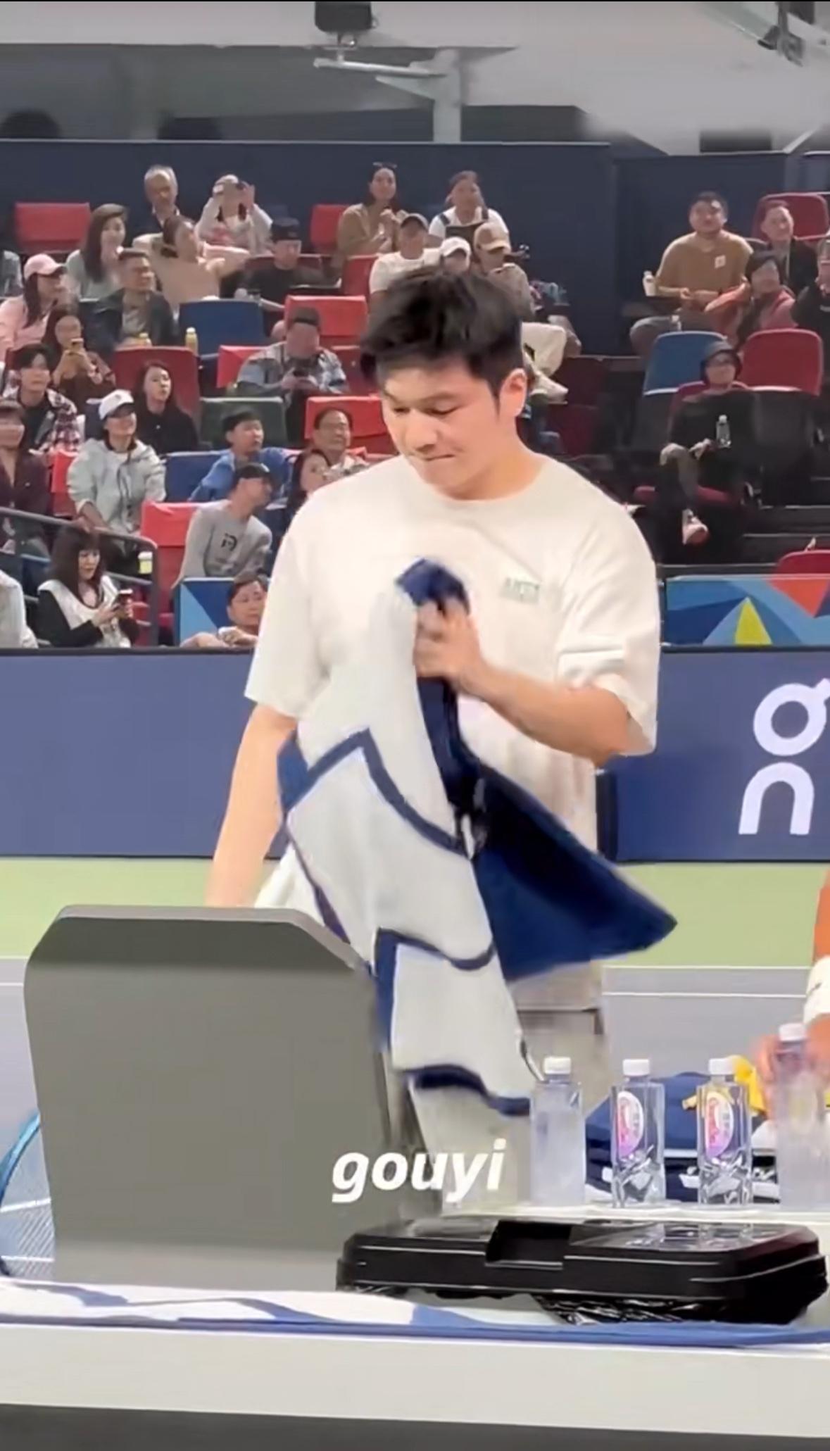 东哥打网球,这造型太青春男大学生了! 用毛巾擦脸,结果麦掉了,又一个劲认真的找,还有点小匆忙,麦呢麦呢,好在一下就找到了,要不然该着急了! 东哥出席了网球的活动,好简单,但是很迷人,魅力无限,潜力大大的,还真的哈帅,他真的真的真的超级可爱啊!