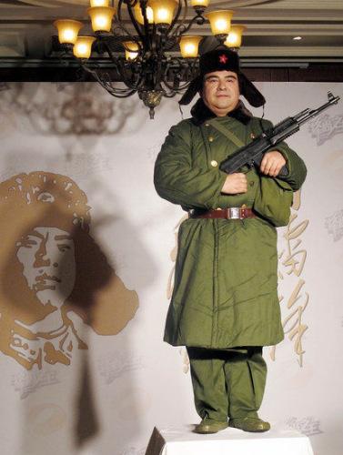 陈光标这身打扮很雷锋,做过不少慈善的他是有雷锋精神的。