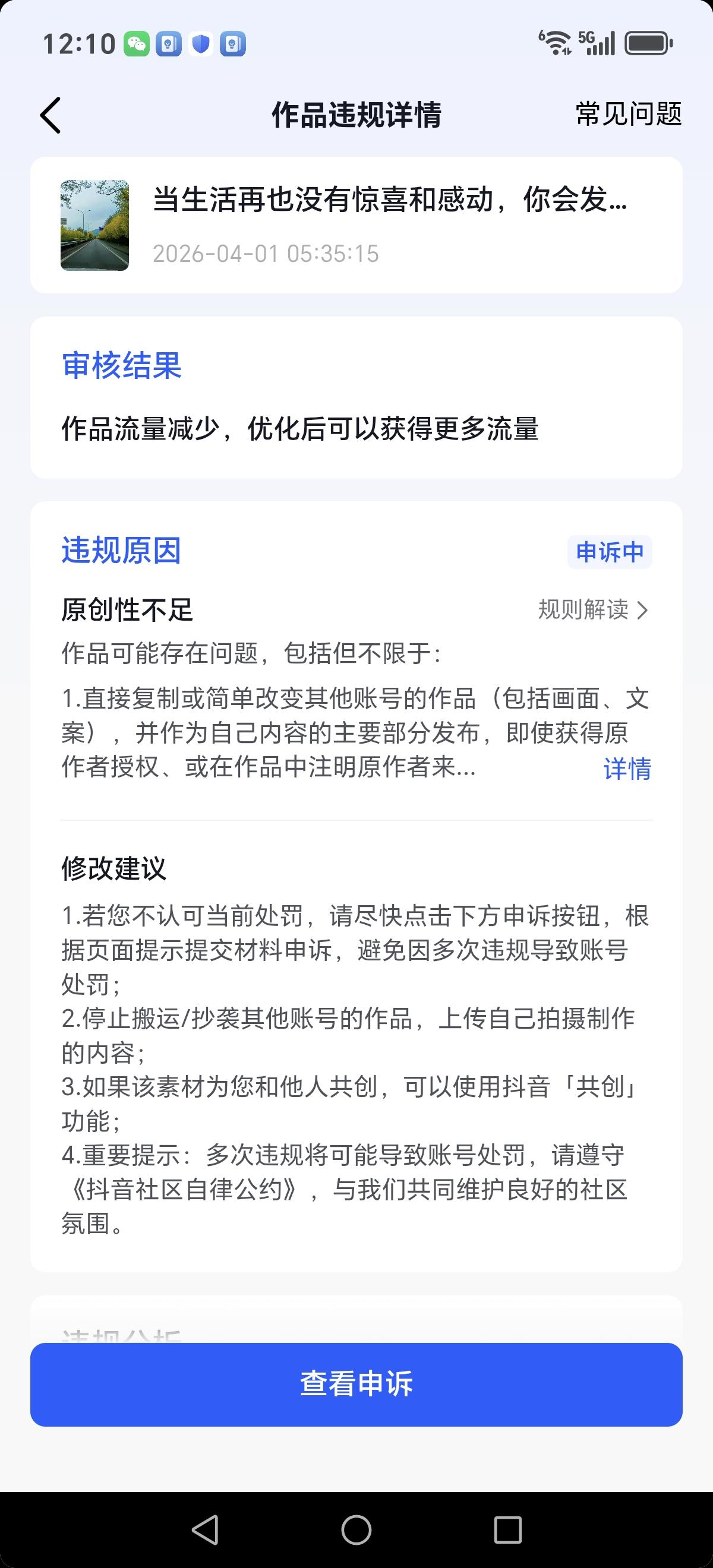 昨天发了条逛燕郊大集的视频,评论区只能看见我自己的评论,别人的全都不显示。问了客服才知道,是我之前发的延庆风景视频被误判违规,导致这条被连带限评。我已经申诉了,可惜原素材都删了,心里没底。明明是自己原创,就因为跨平台先发了别的平台,就被判定搬运,平台审核也太严了。联系人工客服特别麻烦,也没给出有效解决方案,只说24小时后可能恢复。 后经申诉审核通过了,属于机器误判,到了晚上还是看不到大家的评论。本来收益就很低,还被这样误罚,做自媒体真心不容易。