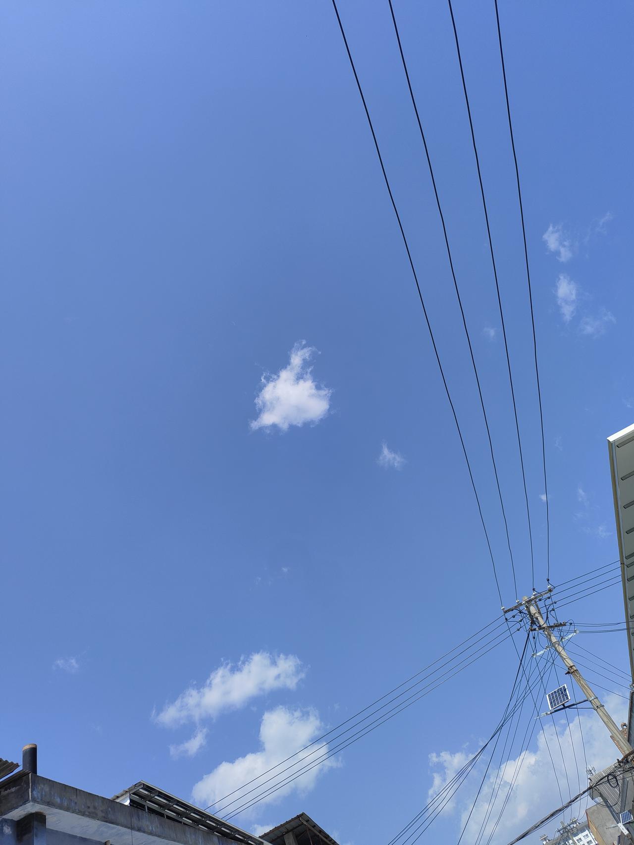抬头撞见一整片澄澈的蓝,电线串起云朵,风里都是春日的晴朗与温柔。