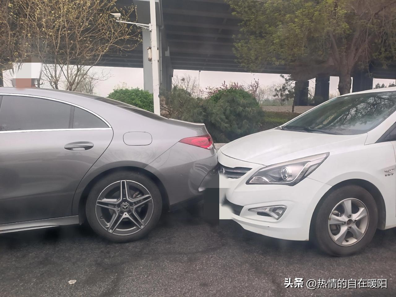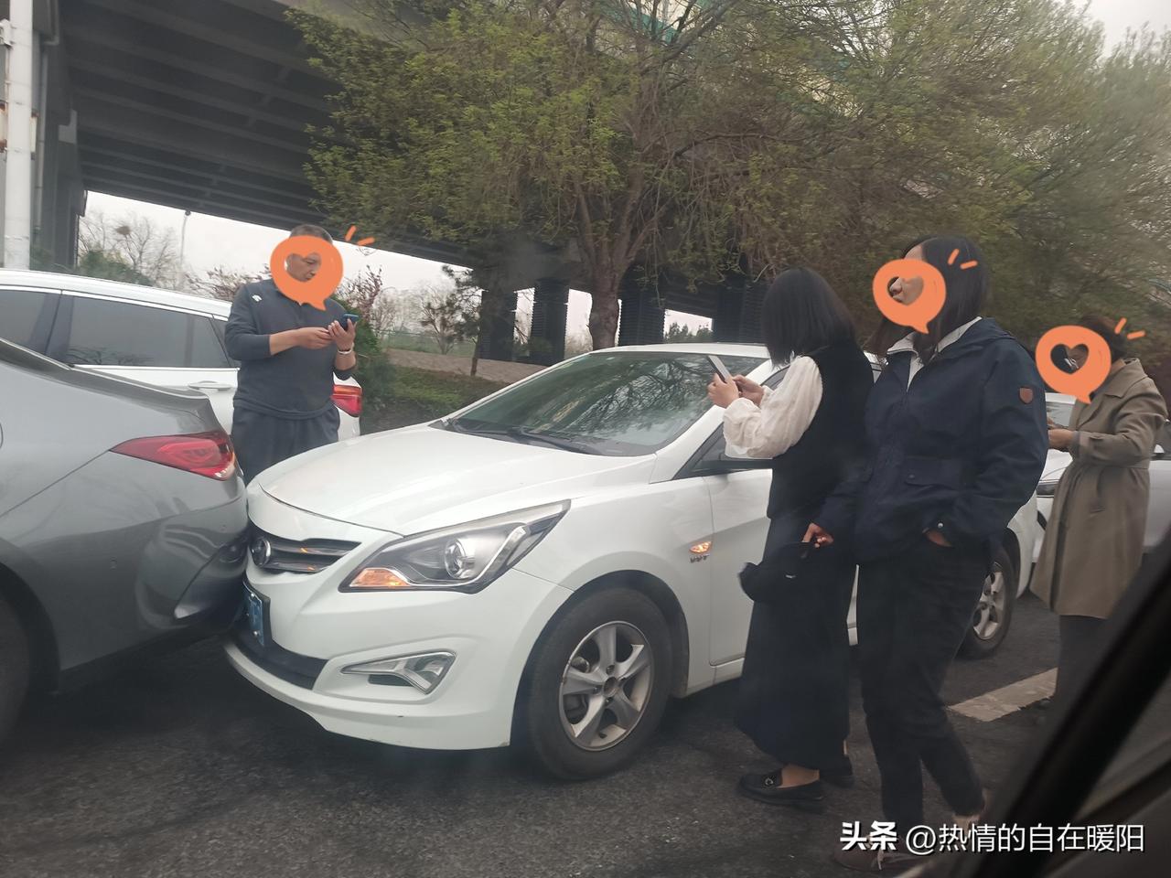 正堵在路上,突然“嘭”的一声闷响,心瞬间揪紧。转头望去,竟是三车连环追尾:最前的车被中间的车顶着,中间的车则是被后面的车撞了。 最前面是男司机,后面两位是女司机。大家几乎同时下车,无人争执,都第一时间打电话处理。 出行在外,安全永远第一,愿每次出发都能平安抵达。 (照片现场拍的)