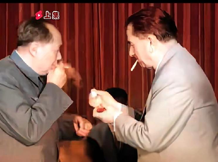 毛主席很爱抽烟,特别是思考问题时,吸烟特别多。他一生至少抽了60年烟。 照片中这位给毛主席点烟的人是谁?你知道吗?