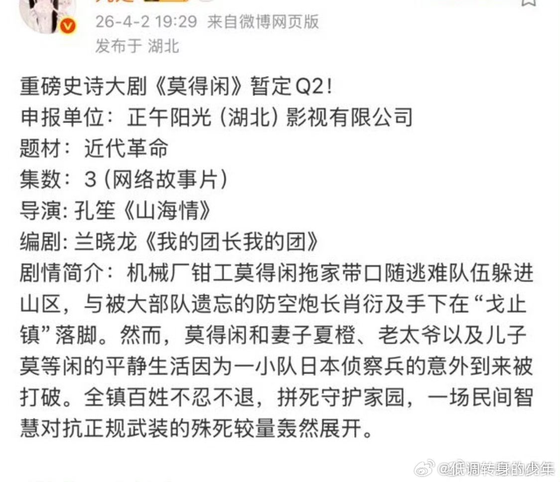 肖战得闲谨制《得闲谨制》3集网络故事片,直接用《莫得闲》命名!重磅史诗大剧~暂定Q2,故事片是那种带解说旁白的吗!肖战得闲谨制 可以看到未删减版