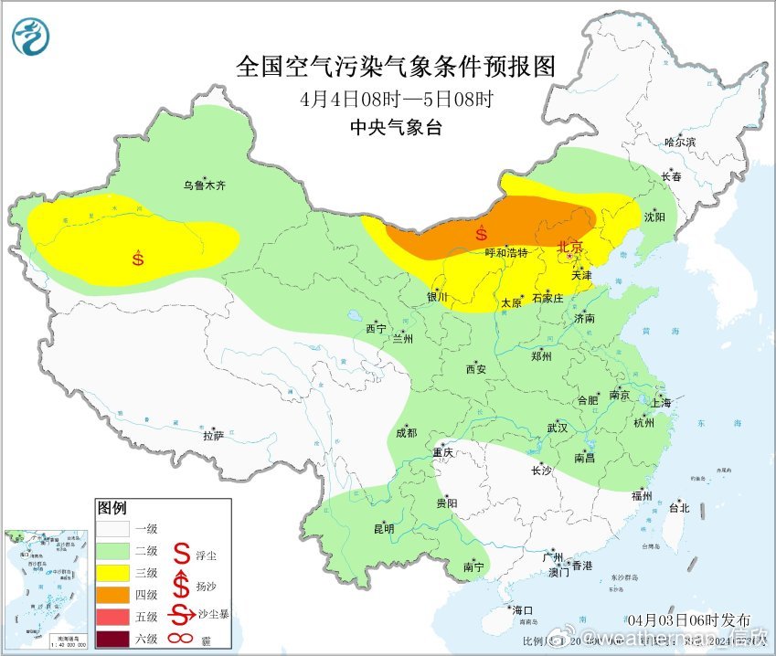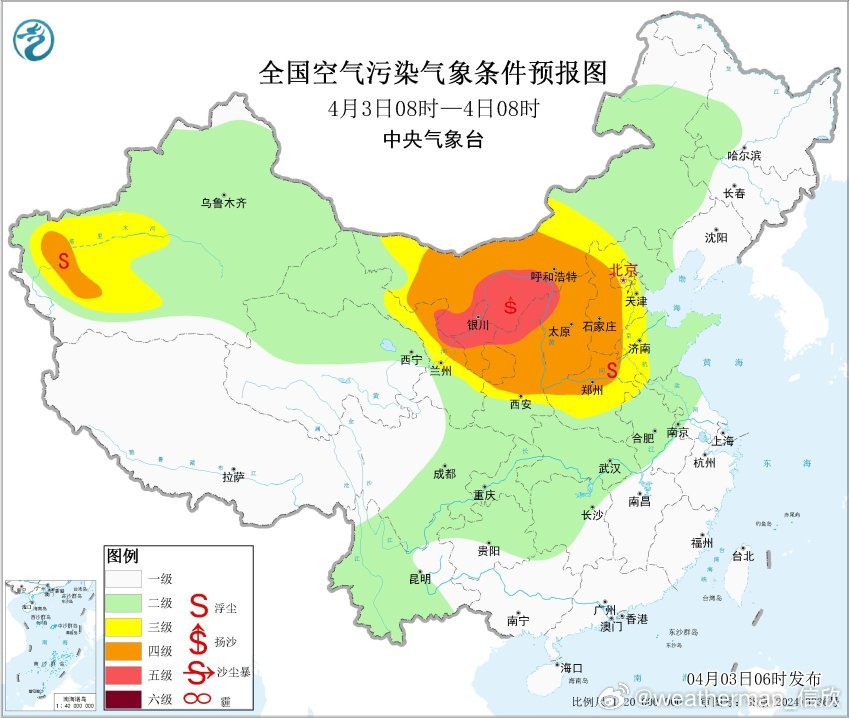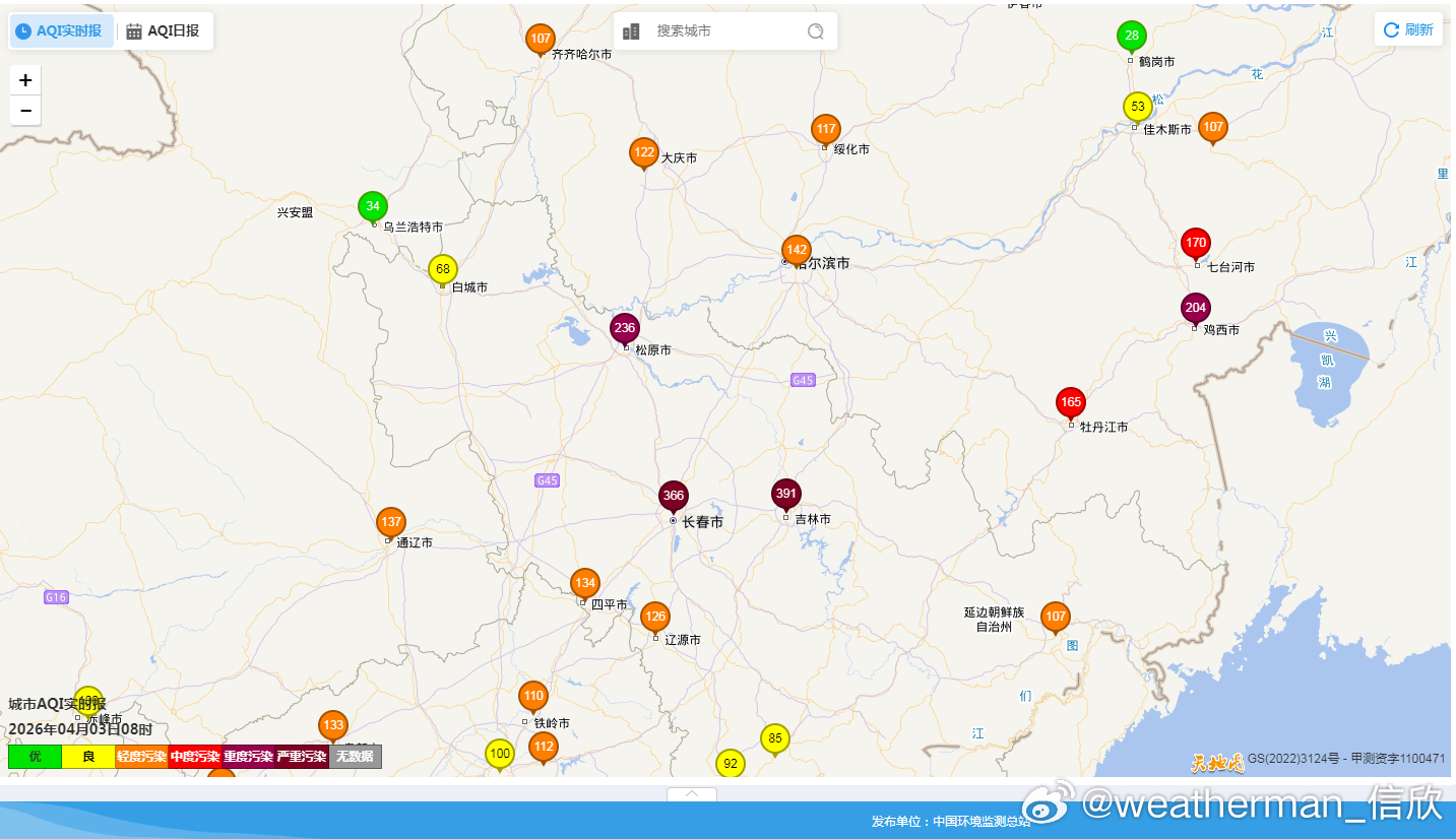 今晨东北华北黄淮有霾,黑龙江鸡西、吉林松原出现重污染,吉林长春、吉林市出现严重污染。华北黄淮多为轻度污染。今天下午-明天随着冷空气东移南下,霾有望被消除,但冷空气也可能导致华北等地出现沙尘。