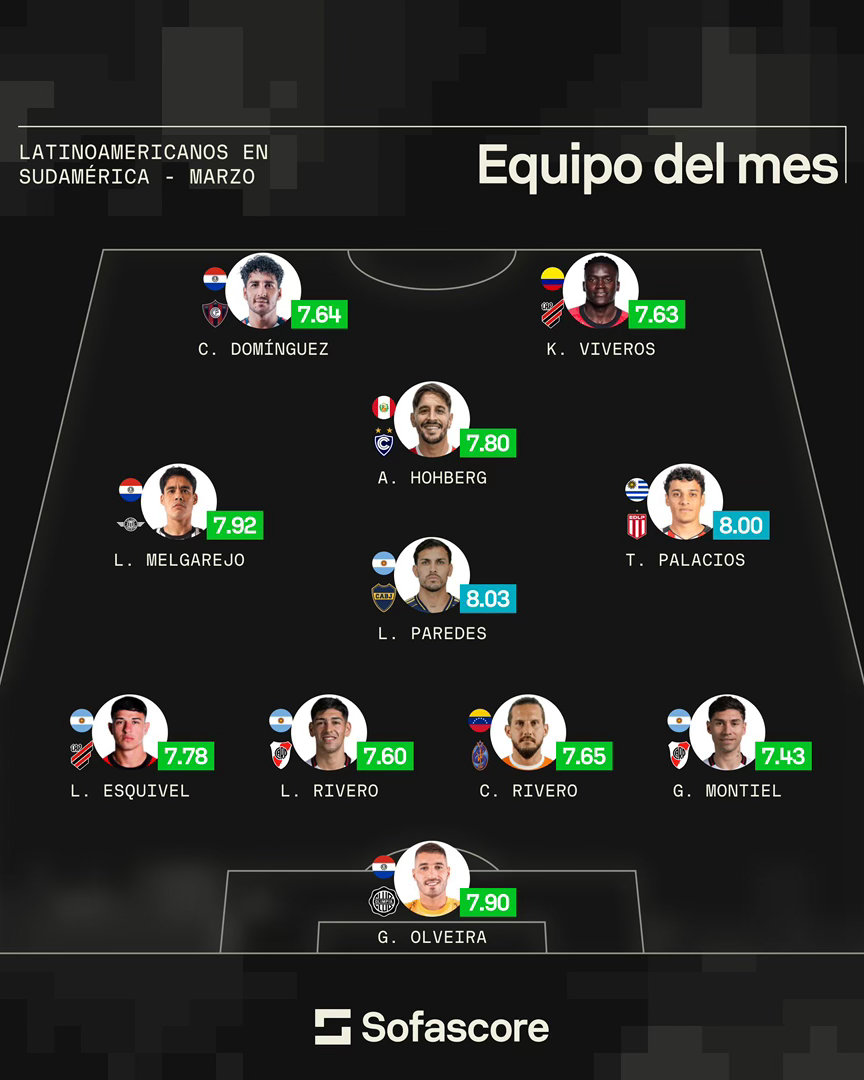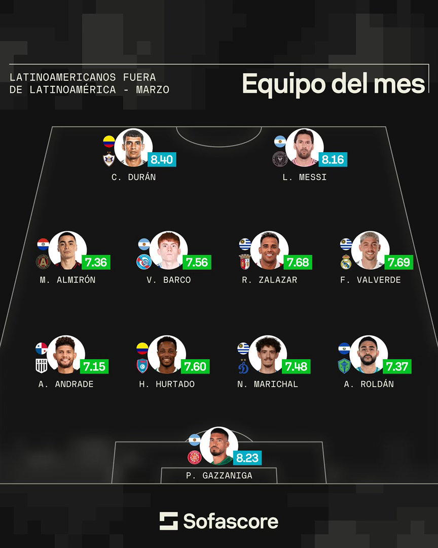 Sofascore选出两套最佳阵容:一套是在拉丁美洲以外地区效力的拉丁美洲球员组成,另一套是在南美足坛征战的拉丁美洲球员。
