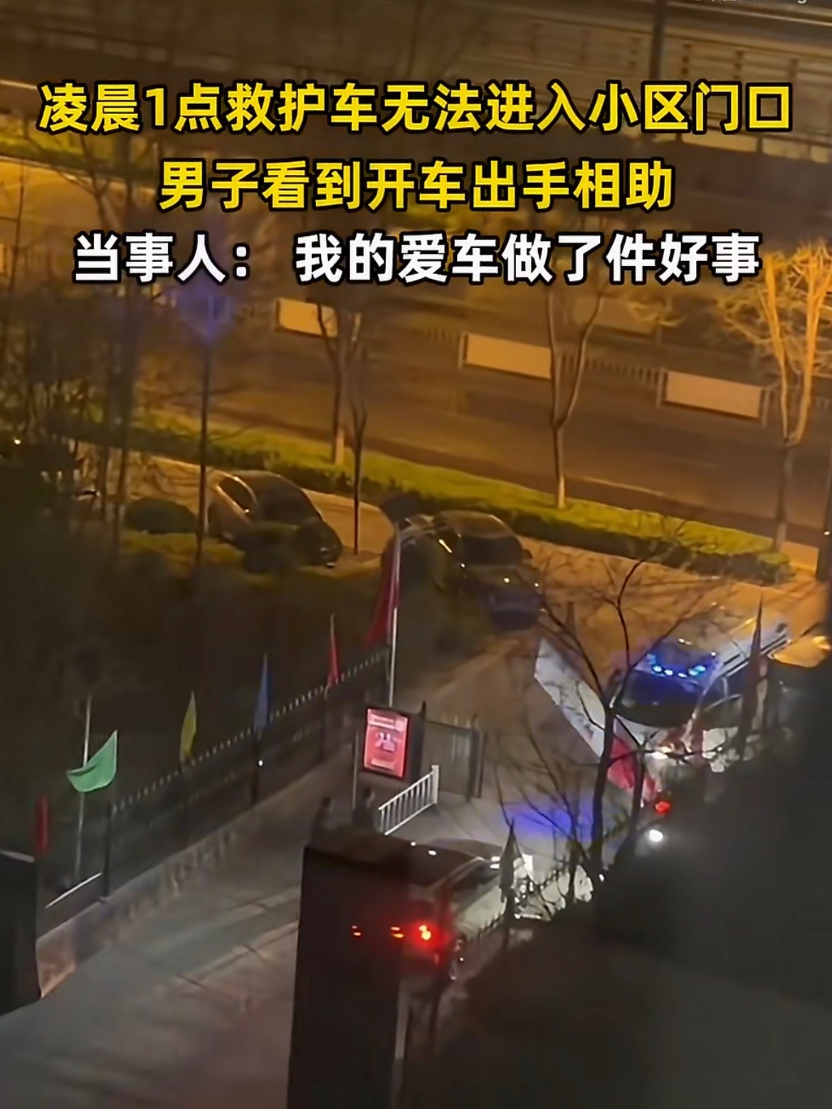 救护车进不去小区00后业主开车抬杆 这业主好样的!话说小区闸口晚上没有物业值班吗