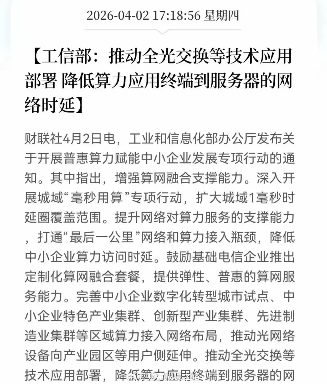 昨晚上工信部发了支持OCS的文,这个很超预期。虽然有资金明显提前知道了,但还是超预期…这是第一次正经说这个,意味着技术路径的爆发。