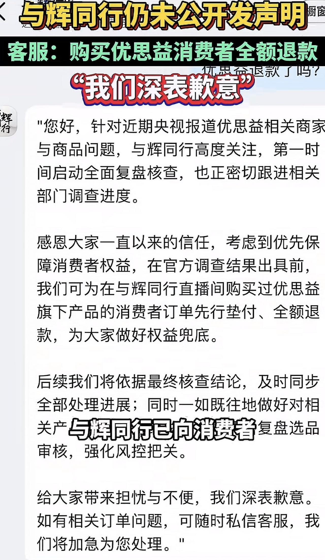 先声明,我不是所谓的“丈母娘”,就事论事!央视曝光的“优思益事件”,不仅让一直拿着放大镜找董宇辉错处的自媒体跟打了鸡血似的,连一些官方媒体都跟着凑热度,标题上来就先写“与辉同行直播间带货的优思益被央视曝光涉嫌虚假宣传……” 事件本身没什么可掰扯的,事实摆得明明白白。4月1号央视的调查直接锤死了,优思益吹得天花乱坠的澳洲本土品牌全是编的,说在墨尔本有自己的工厂,结果实地一查,那地方就是个修汽车的铺子。产品全是安徽仙乐健康这些国内工厂代工的,连个保健品必备的“蓝帽子”认证都没有,却天天在网上吹能护眼、能护肝、能调肠胃。更离谱的是,他们的营销公司自己都承认,什么国际大奖、海外专家背书,全是花钱买的。 与辉同行确实带过这个牌子的货,公开能查到的数据是,当时那场直播卖了大概8万多单,销售额差不多2000万。但真不是只有他们一家在卖,李若彤、章小蕙这些明星都代言过,各大平台的中小主播带过货的更是数不过来。 可你看现在的舆论,几乎所有的火力都集中在与辉同行身上。随便刷几条新闻,标题第一个提的都是董宇辉的直播间,至于品牌方从头到尾的造假,还有其他那么多涉事的明星和平台,大多一笔带过,甚至提都不提。说白了,还是谁流量大就逮着谁薅,骂董宇辉比骂一个不知名的保健品公司,阅读量能高几十倍。 这事中间还有个挺明显的转折。4月2号早上,最开始有消费者去问的时候,与辉同行的客服就只转发了品牌方自己发的声明,说产品没问题,当时好多人都骂他们敷衍。结果当天晚上,他们就发了正式的道歉信,说不等官方最终结果,先给所有买过的消费者全额退款,不管你拆没拆封、买了多久,都能退。 其实仔细想想,这场吵得沸沸扬扬的舆论战,各方心里都有自己的小算盘。那些天天盯着董宇辉的自媒体就不用说了,随便发一条相关的内容,点赞评论都能比平时多好几倍,流量就是钱。有些官方媒体也跟着蹭这个热点,毕竟自带争议的话题,传播起来比普通新闻快多了。反倒是真正该被千夫所指的优思益,最开始那两天,居然没多少人骂。 责任怎么分其实很清楚。品牌方从根上就是假的,虚假宣传、伪造资质,这是最主要的责任,该罚该查都得冲着他们来。平台有审核的义务,直播间作为卖货的渠道,选品没把好关,肯定也有责任,该赔的赔,该整改的整改。但不能把所有的锅都扣在董宇辉一个人头上,他又不是质检员,不可能每一款产品都亲自去澳洲查工厂。 就拿之前的小仙炖事件来说吧,当时也是一堆明星和头部主播都在带货,最后被查出来虚假宣传,主要处罚的也是品牌方和平台,没有说把所有责任都推给某一个主播的。这次的情况其实一模一样,不能因为董宇辉现在热度高,就搞区别对待。 现在监管已经介入了,三部门约谈了抖音、淘宝、小红书这几个大平台,广东那边的市场监管、公安也已经对优思益的运营公司立案调查了。最后到底怎么罚,谁该担多少责任,等官方的结果出来就知道了。 现在最让人担心的还是整个直播电商的信任问题。本来大家对直播间卖保健品就有顾虑,这次又出了这么大的事。头部直播间本来应该是给消费者把关的,结果反而成了假货的帮凶,这肯定会伤了很多人的信任。但反过来,也不能因为这一件事,就把所有的头部直播间一棍子打死。 现在网上吵成这样,一边往死里骂董宇辉,说他就是帮凶,一边又拼命护着他,说他也是受害者。其实两边都有点极端了。造假的人必须受到惩罚,直播间的选品漏洞也必须补上,但舆论不能跑偏,不能变成针对个人的人身攻击。只有把该担的责任都落实到每一方身上,才能让以后的消费者少踩坑,这个行业才能好好走下去。