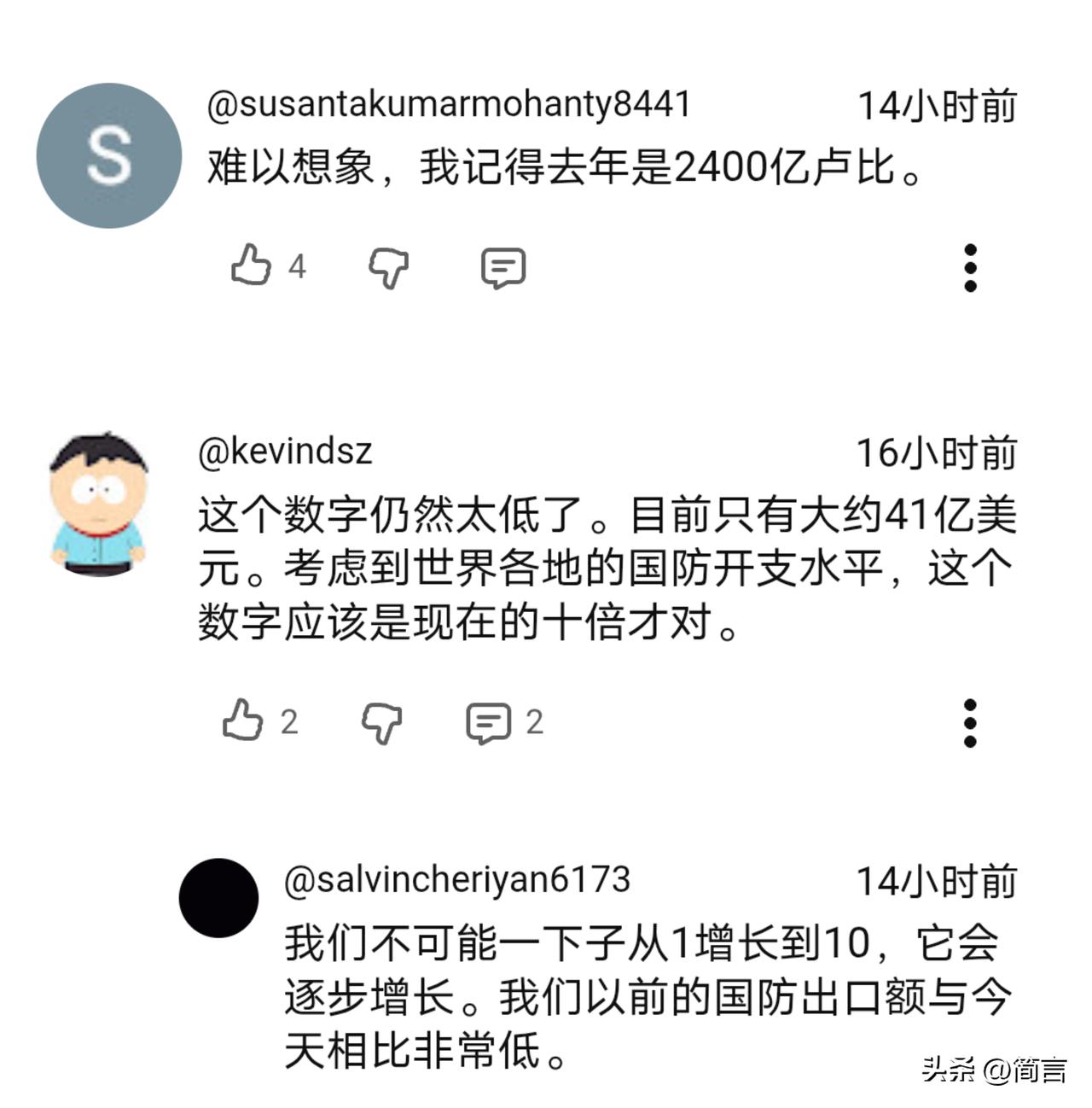 印网友:照此发展下去,印度或会成常任理事国… 据印媒4月2日报道,2025年印度的国防出口额达到了3842.4亿卢比(约合41亿美元),同比增长62.66%。其中,国营企业贡献了54.84%,私营企业贡献了45.16%。 相比十年前(2014 年仅约 0.8 亿美元),印度国防出口额增长了 30 倍以上。其主要买家:包括美国、法国、亚美尼亚等约100个国家,产品涵盖导弹(如布拉莫斯)、雷达、舰艇等。印媒认为,印度距离成为全球主要武器出口国又近了一步。 看见自家武器出口额大幅度增长,印网友表示,印度不止可以成为军事强国,同样成为超级大国…