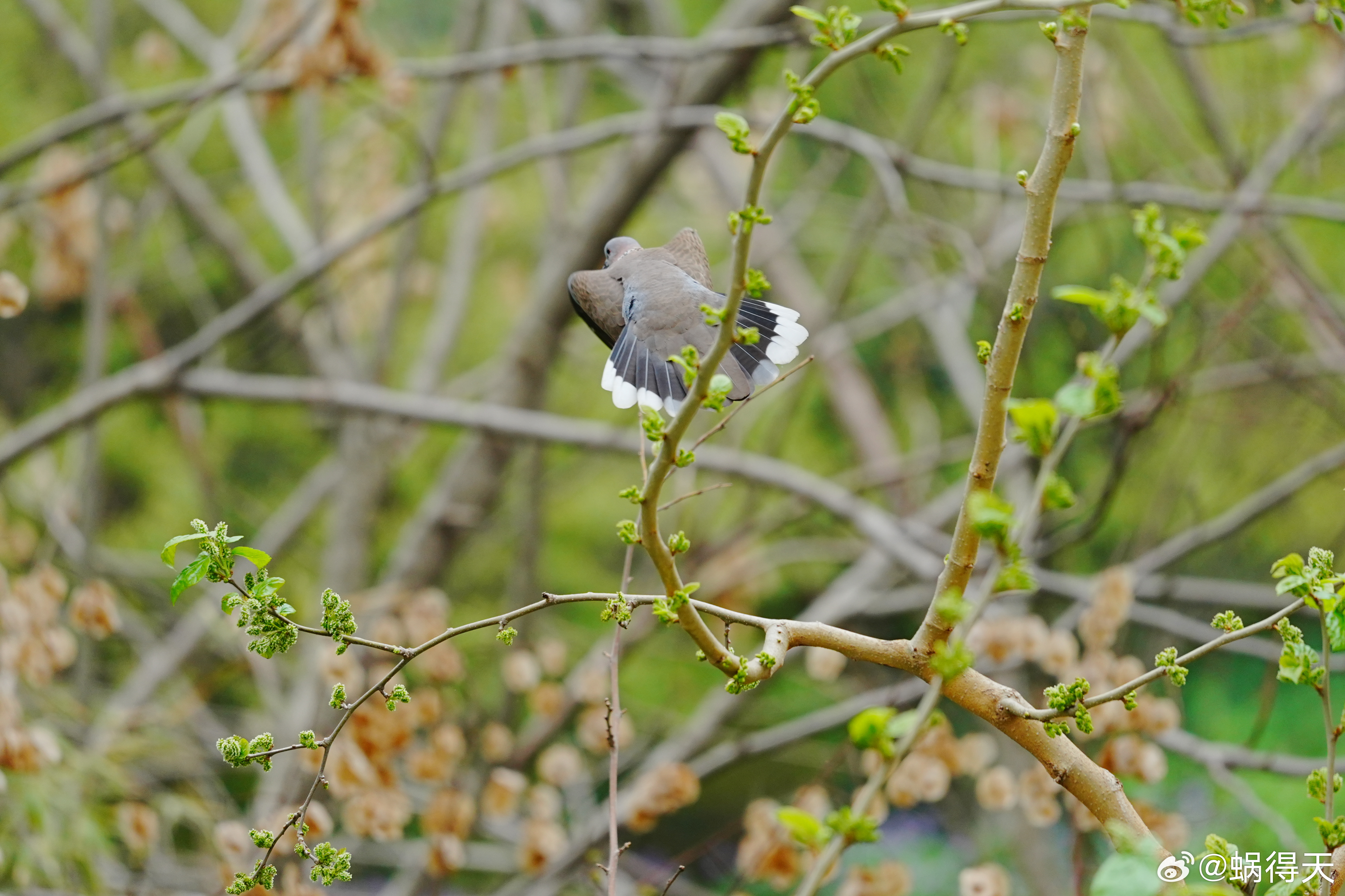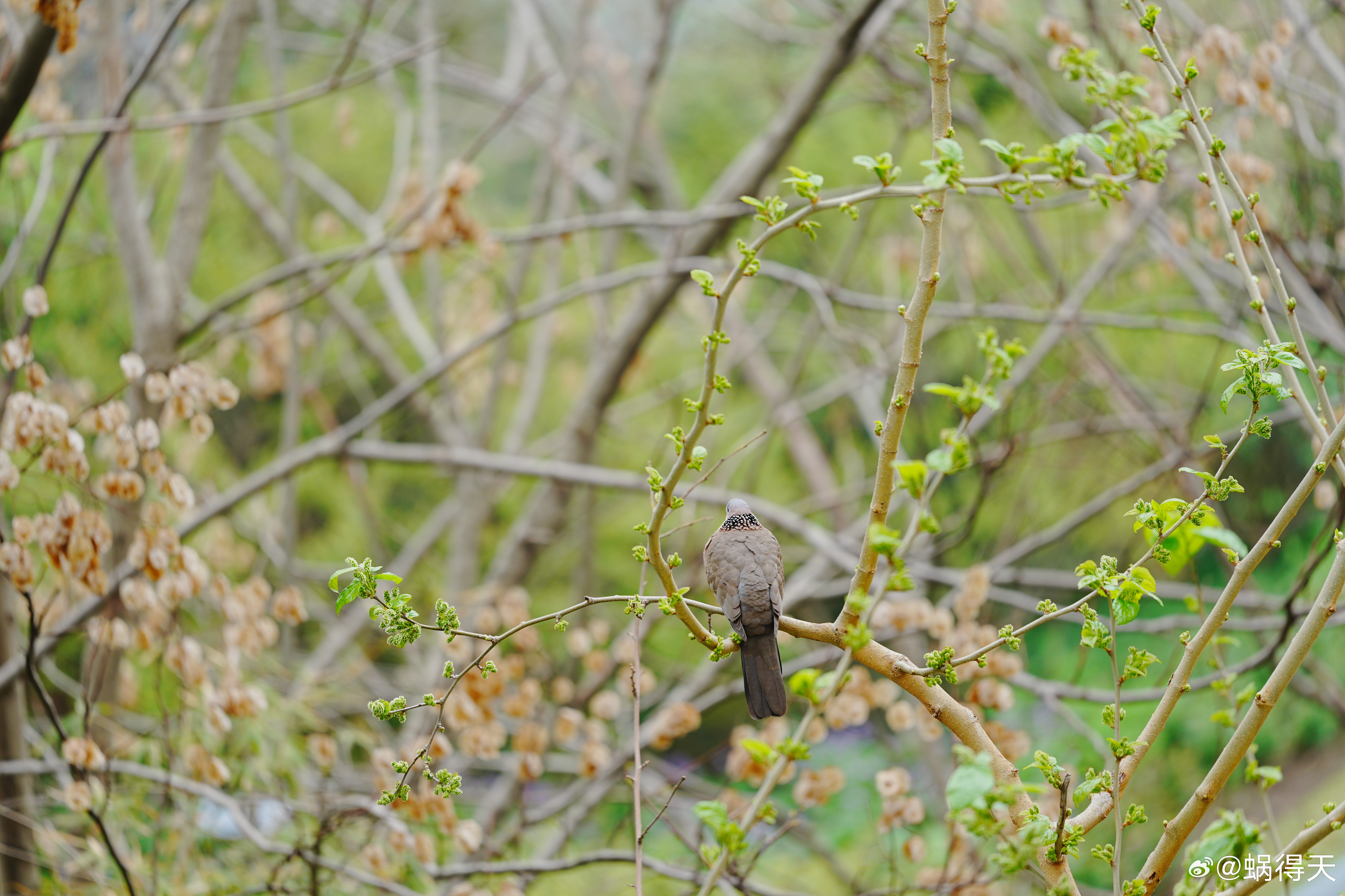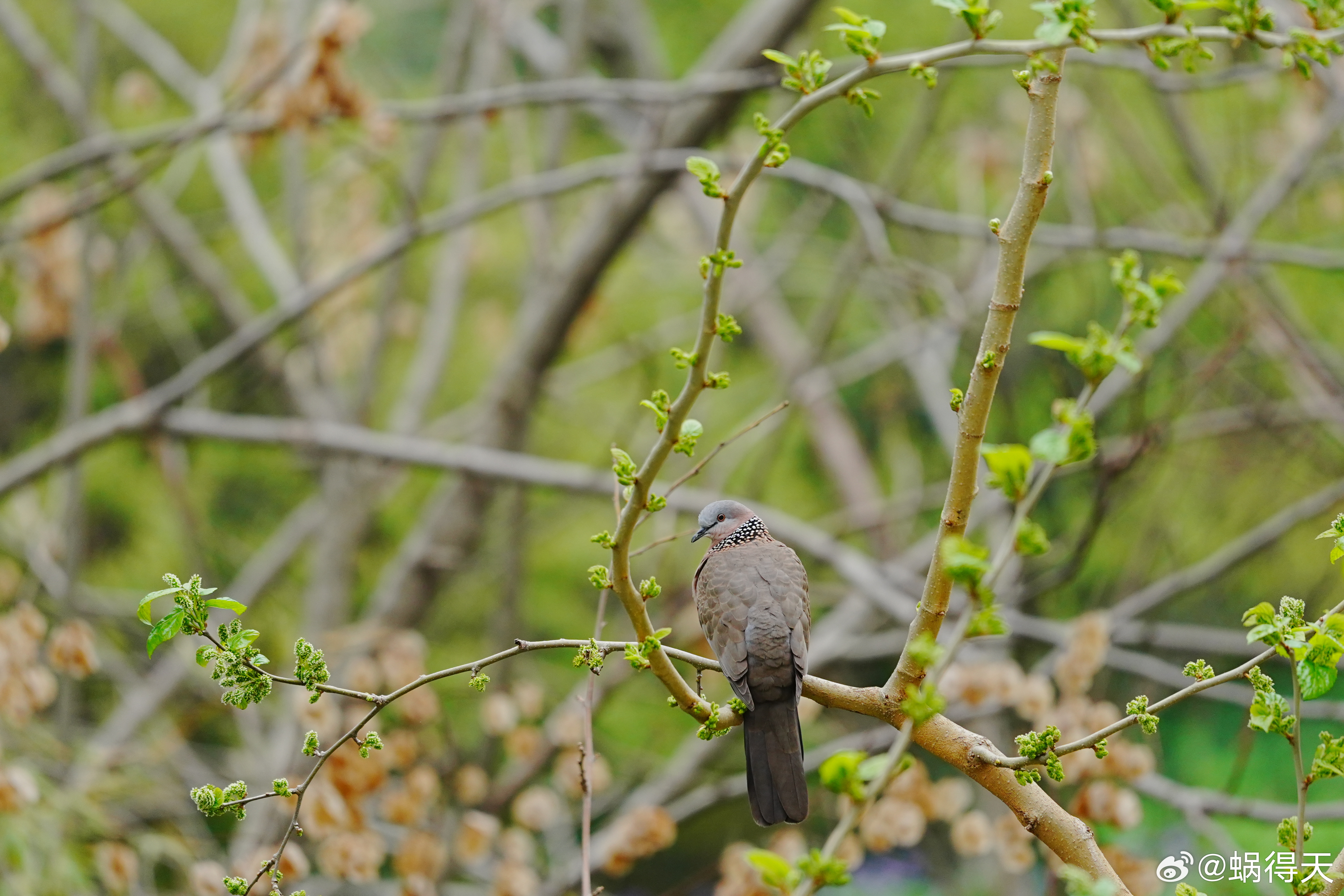 窗外不一定有麻雀,但是桑葚树上有珠颈斑鸠。蜗的摄影日记鸟类