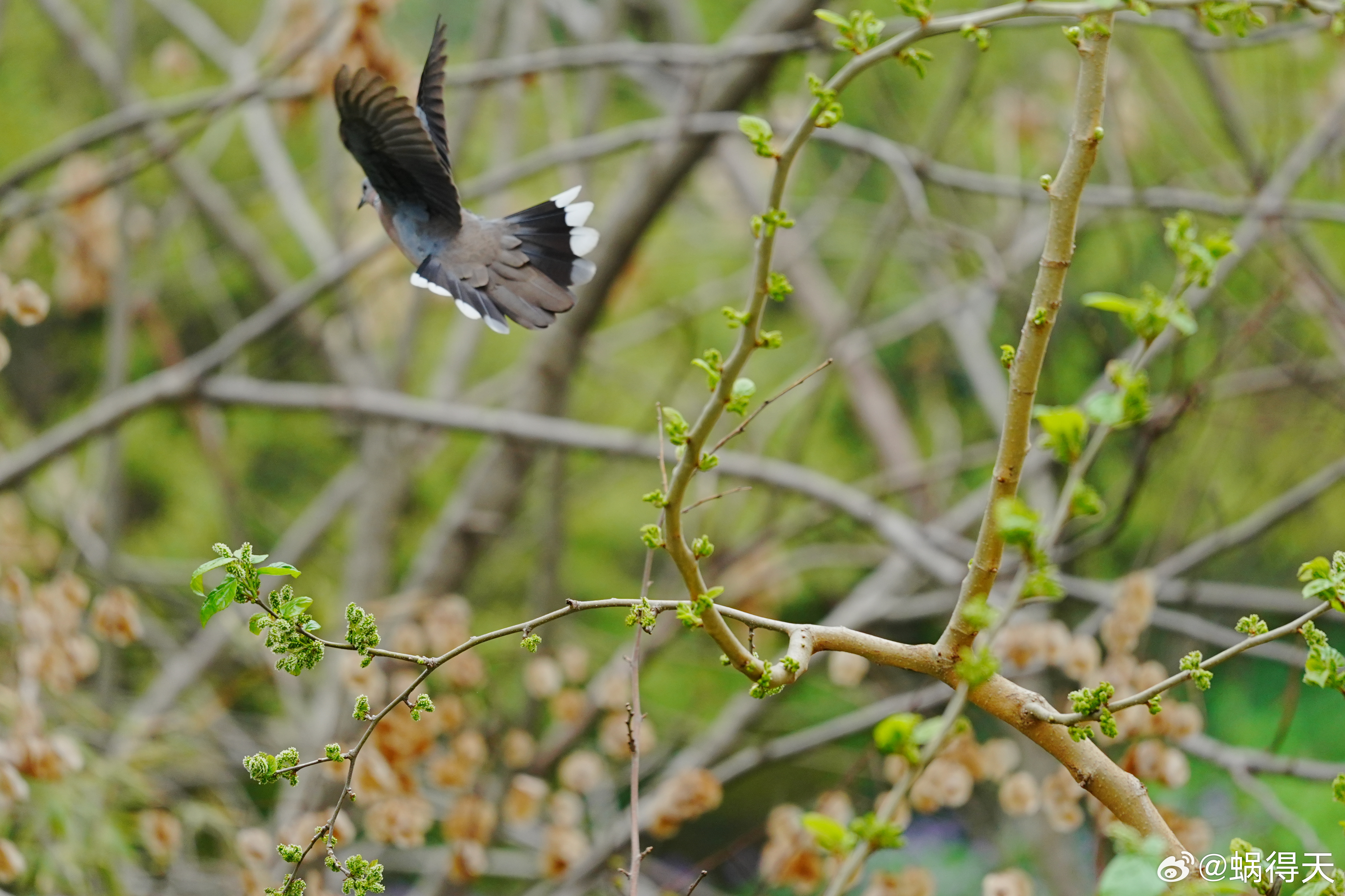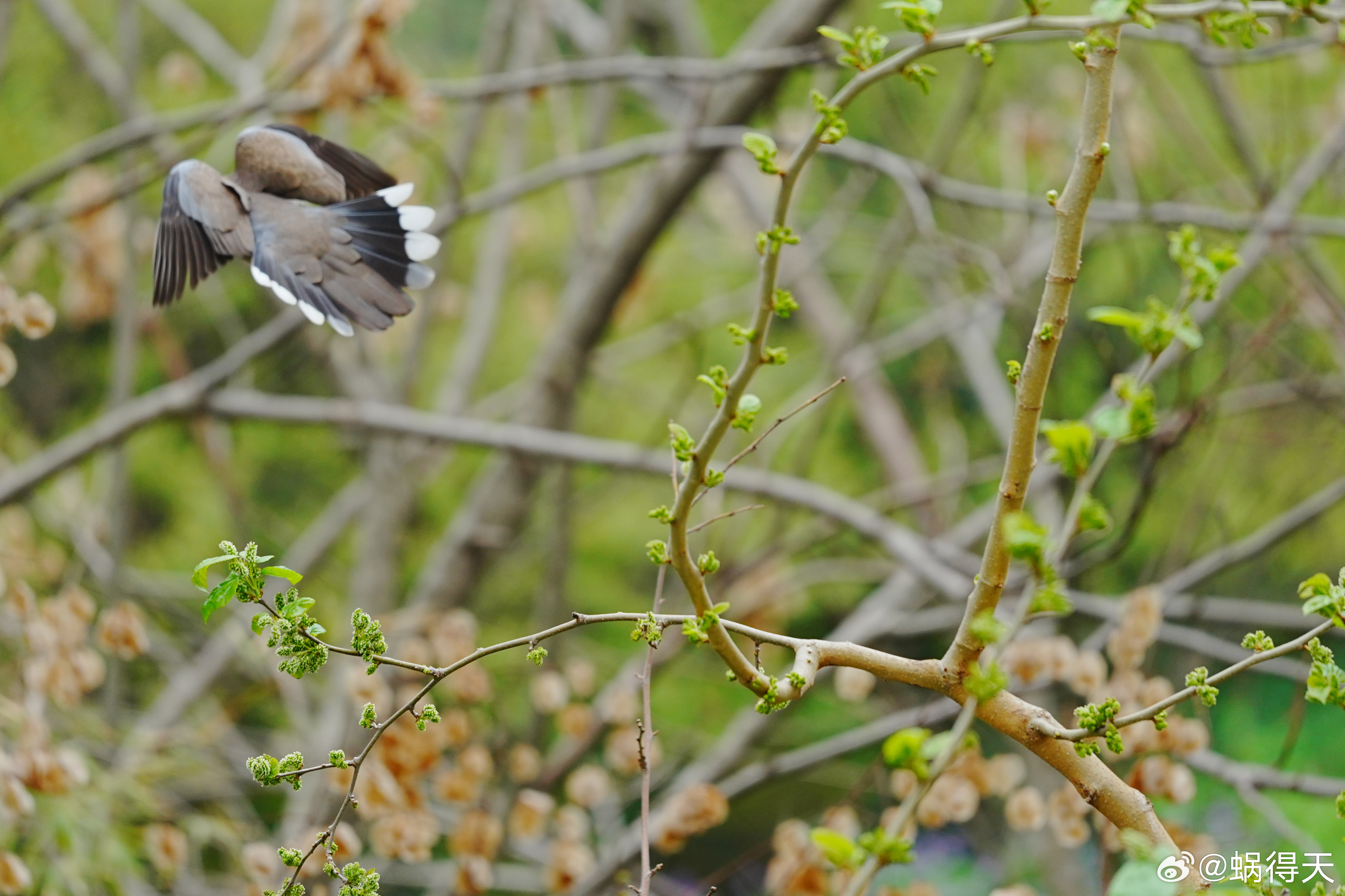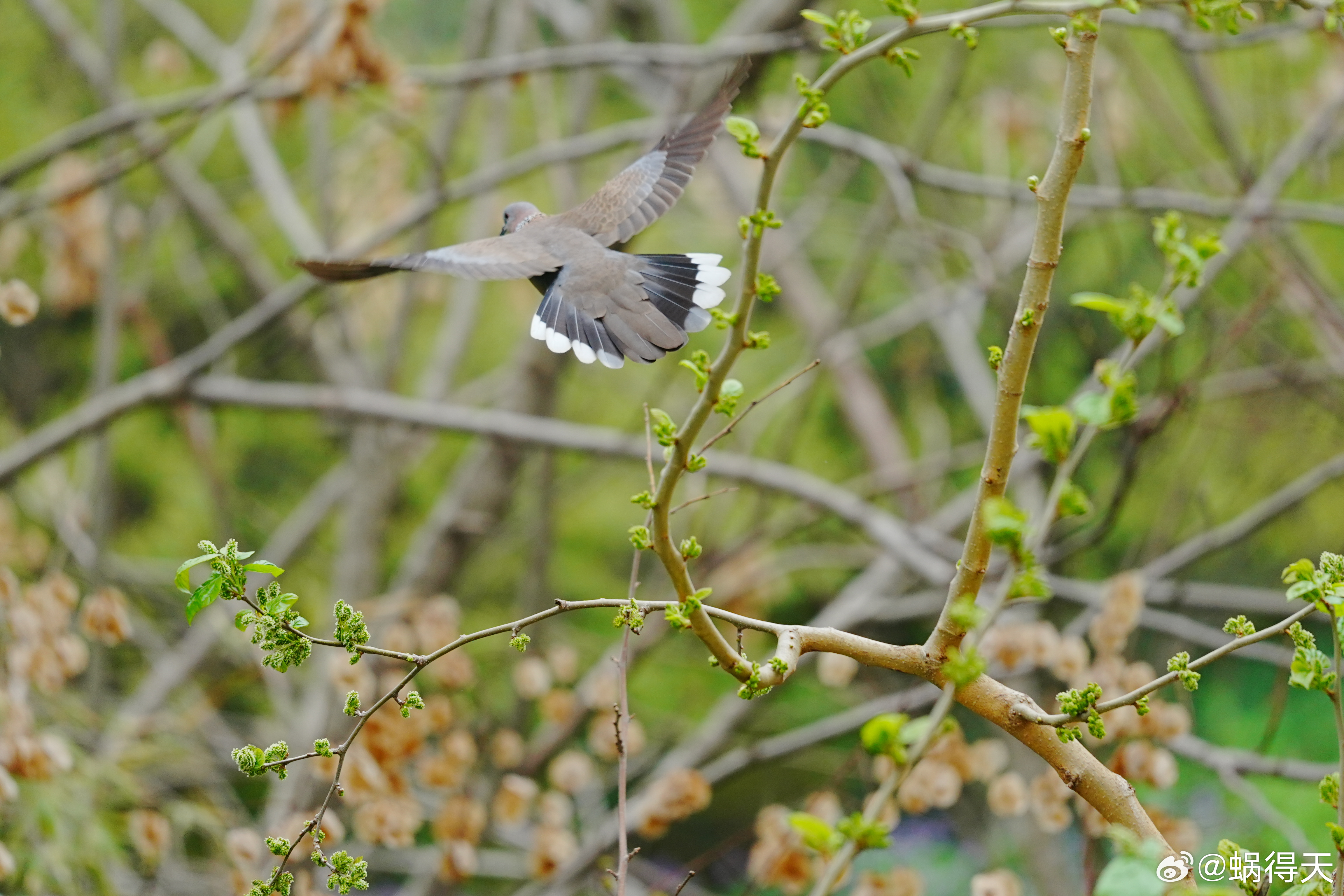 窗外不一定有麻雀,但是桑葚树上有珠颈斑鸠。蜗的摄影日记鸟类