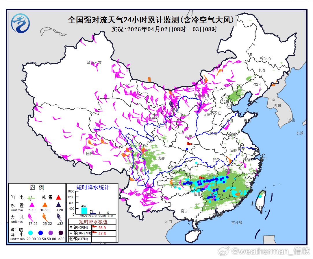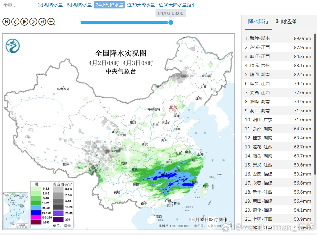 今晨中央气象台继续发布暴雨、强对流天气,两个蓝色预警:预计,4月3日08时至4日08时,江西中南部、浙江中北部、福建大部、广东中北部以及吉林中部、辽宁北部等地部分地区有大雨,其中,江西南部、福建西部和南部、广东中北部等地部分地区有暴雨,局地大暴雨(100~120毫米)。